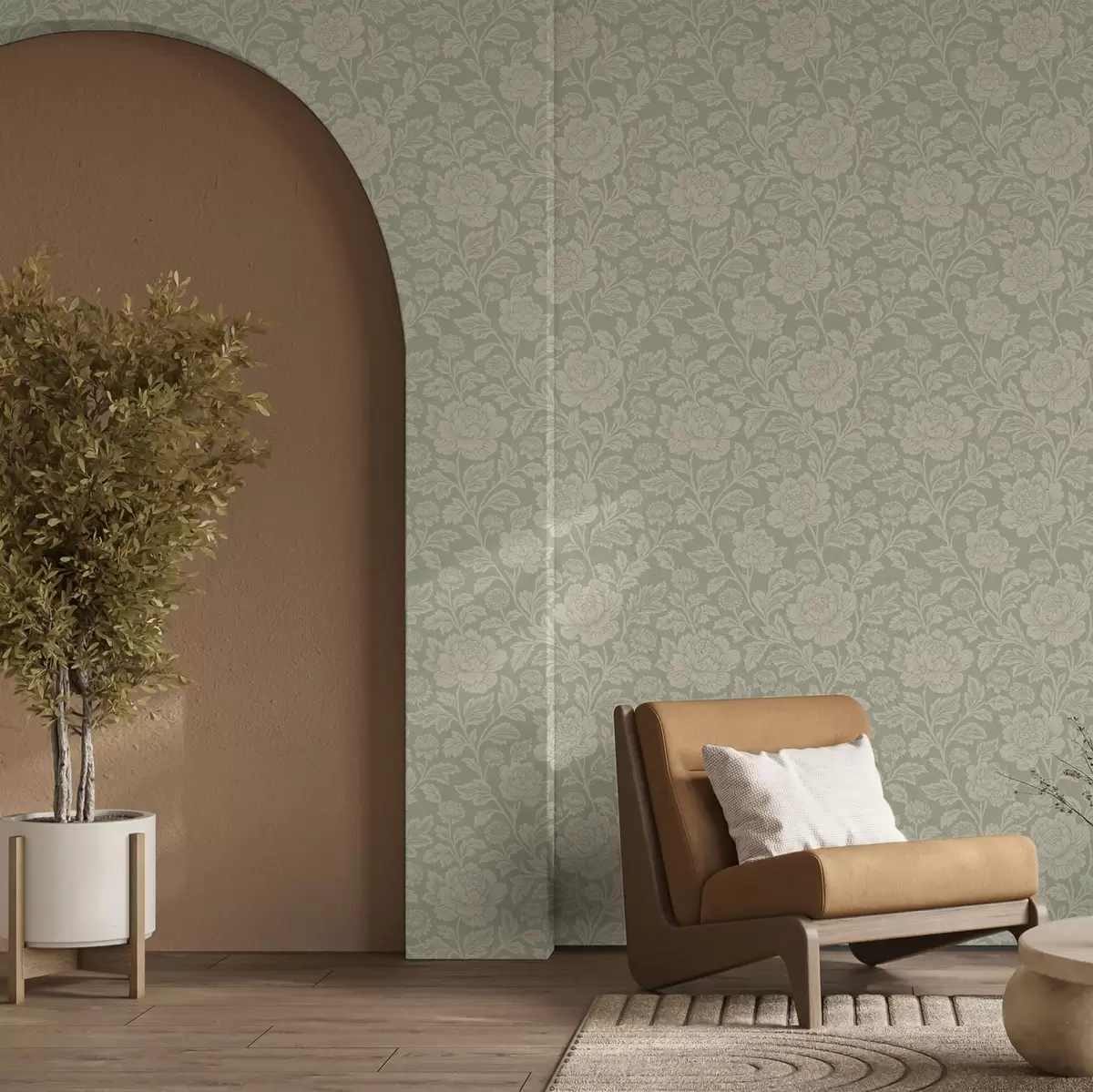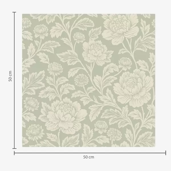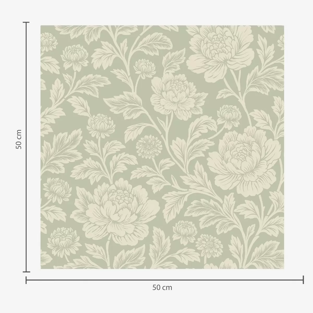Tapete Große Strichzeichnungen von Pfingstrosen auf salbeifarbenem Hintergrund Nr. a00582