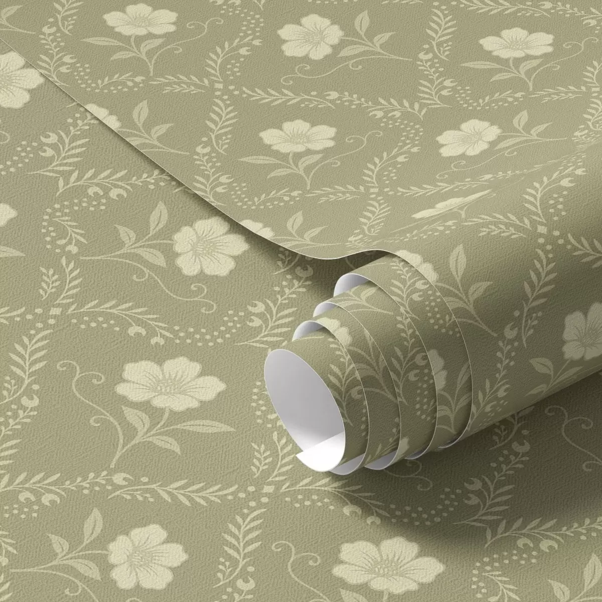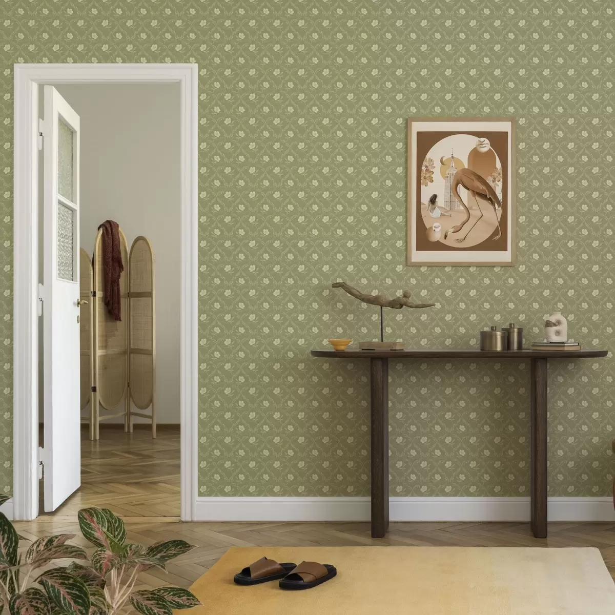 Tapete Olivenbaum-Spalier mit cremefarbenen Blüten, Retro-Ornament Nr. a00585