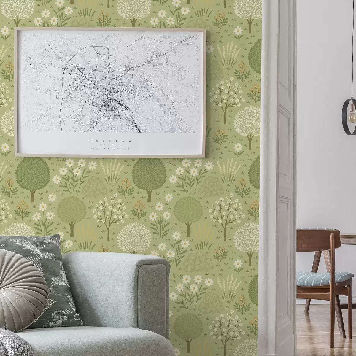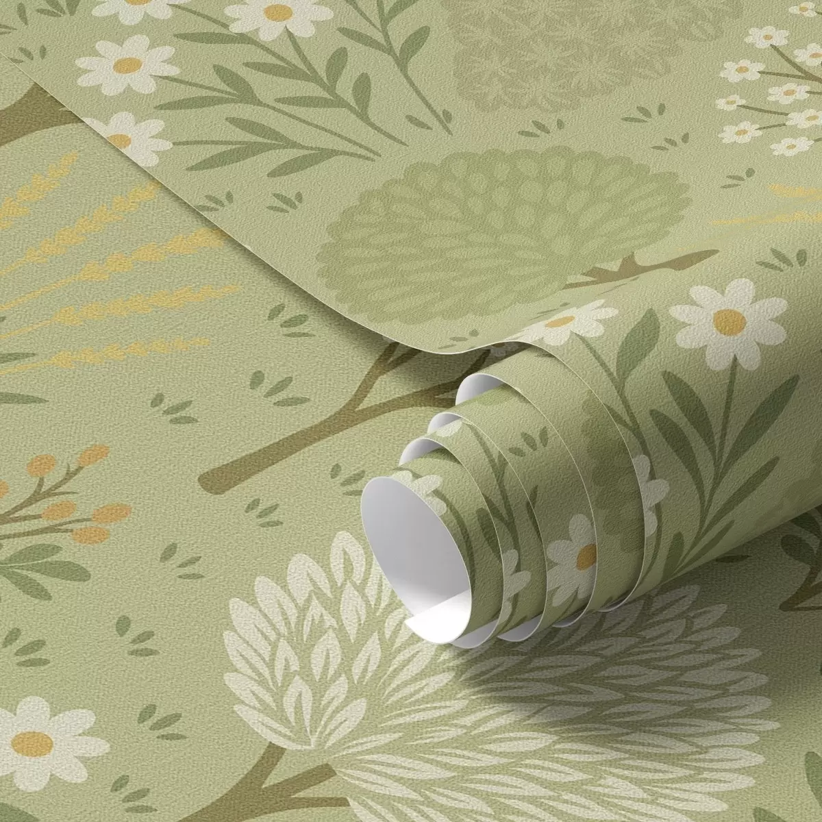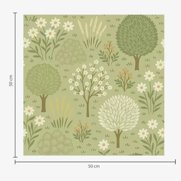 Tapete Grüner Garten für Kinder: Bäume, Blumen und Weizen Nr. a00586