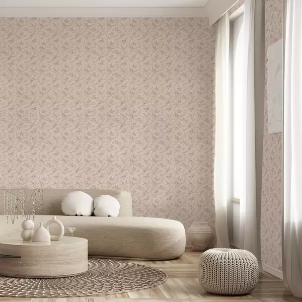 Tapete Vögel und Rosen, Vintage-Muster auf puderrosa Nr. a00587