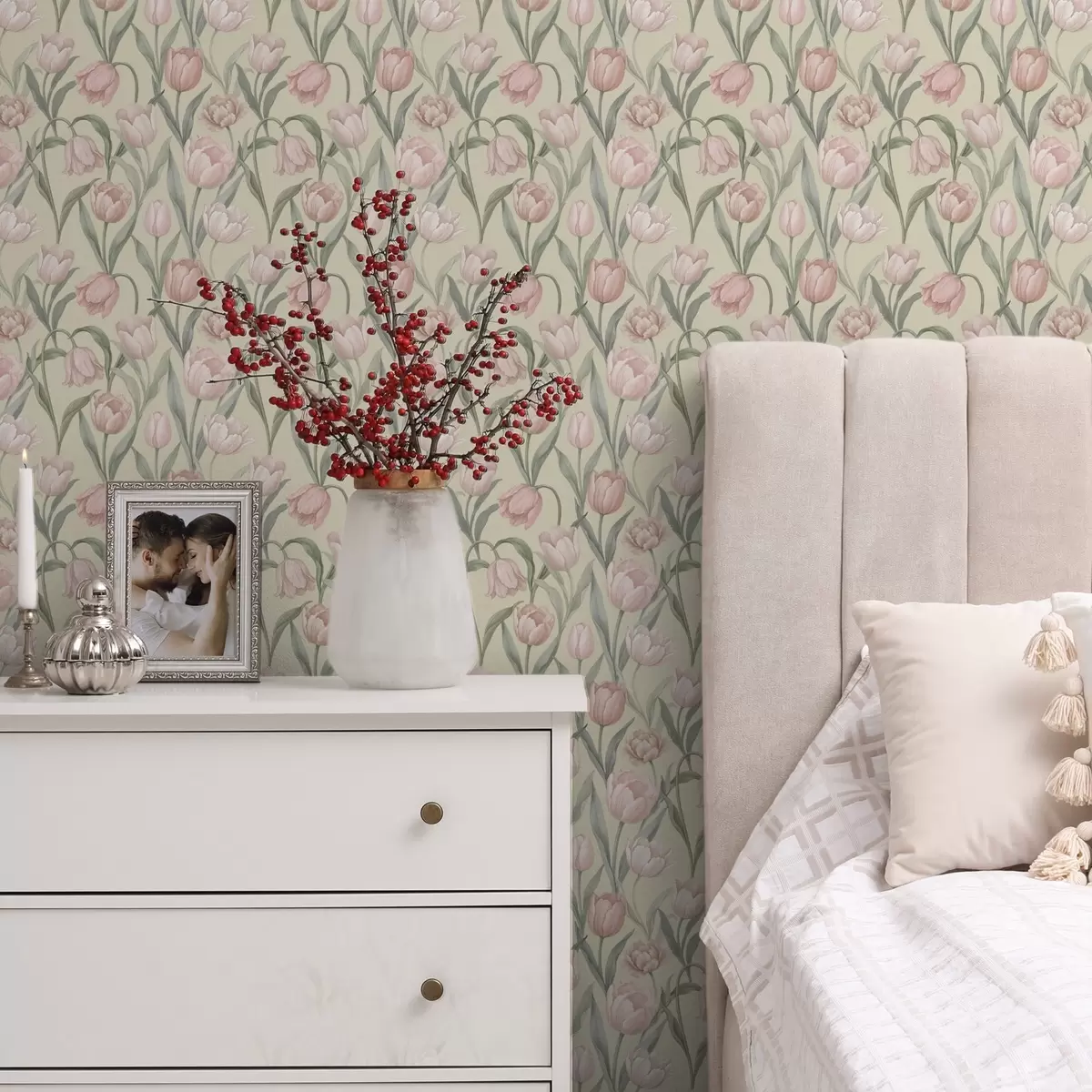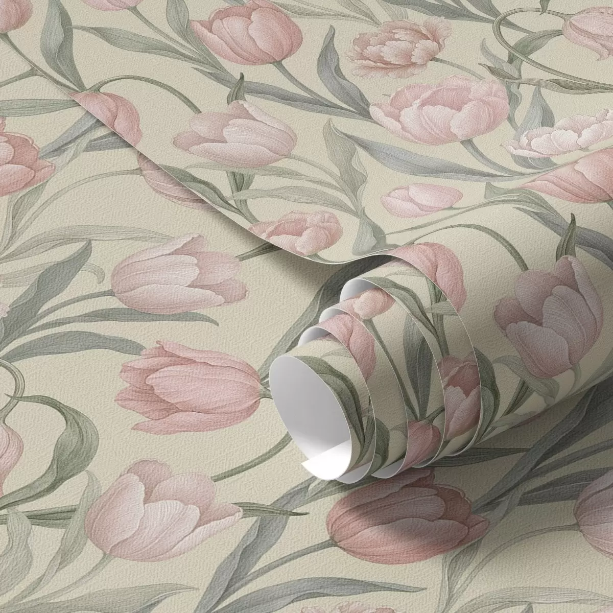 Tapete Zartrosa Tulpen auf einem sanften beigen Hintergrund Nr. a00589