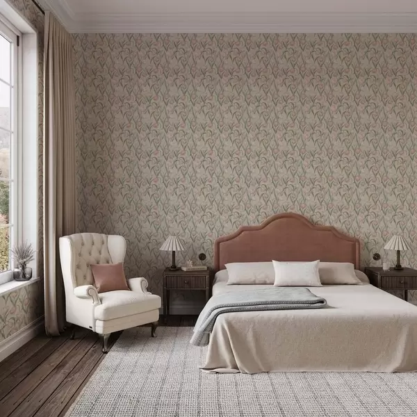 Tapete Zartrosa Tulpen auf einem sanften beigen Hintergrund Nr. a00589