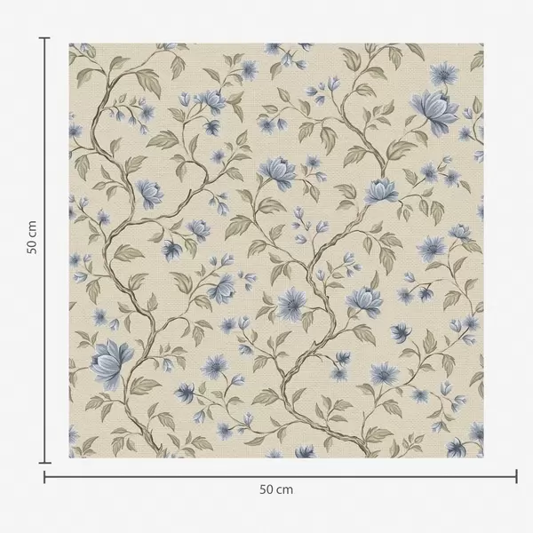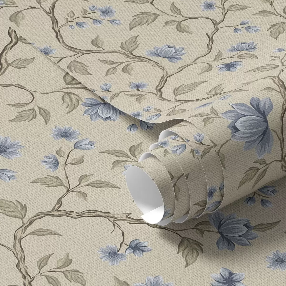 Tapete Blaue blühende Zweige auf einem beigefarbenen Leinenhintergrund Nr. a00590