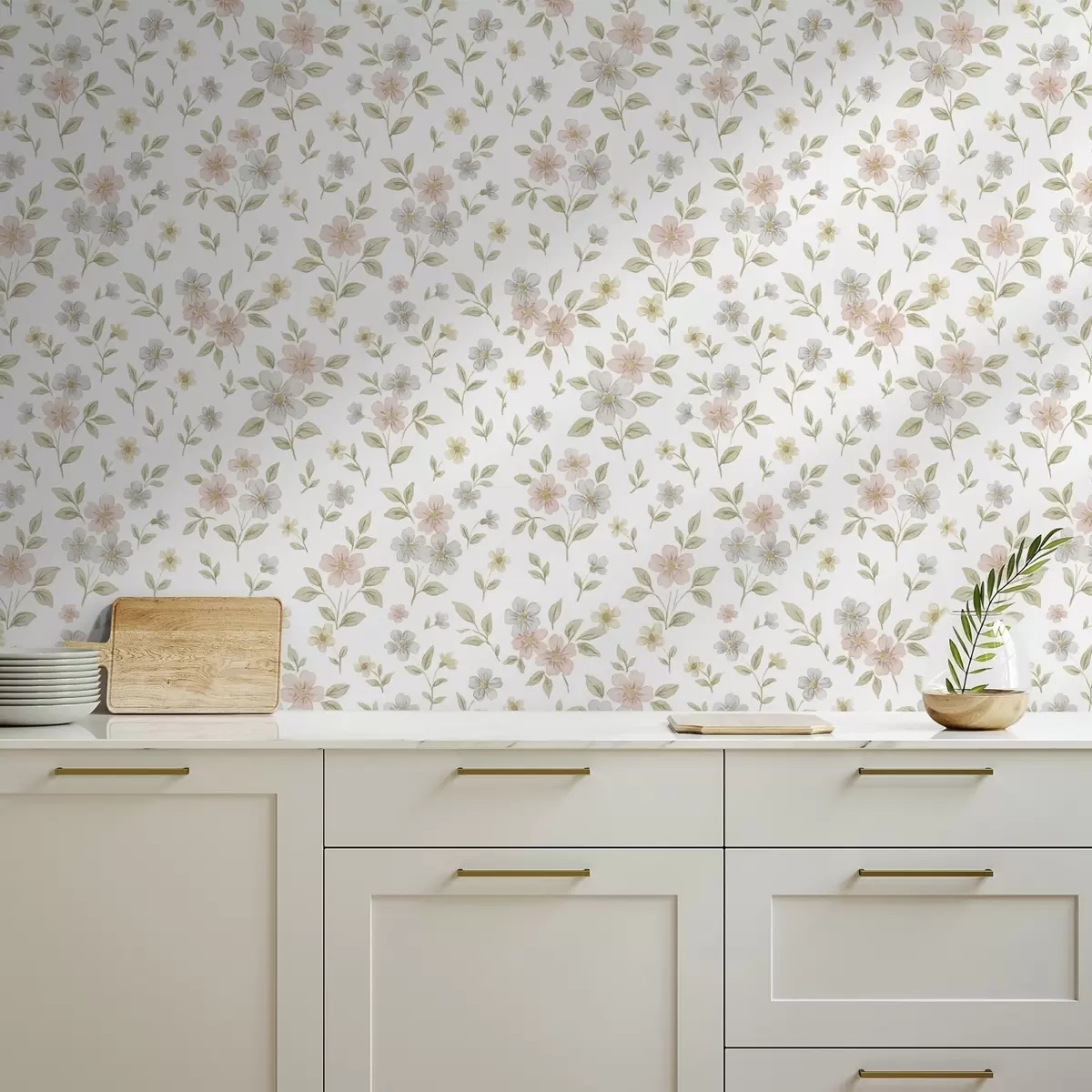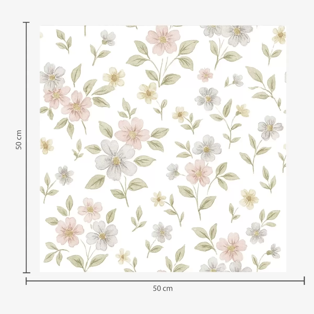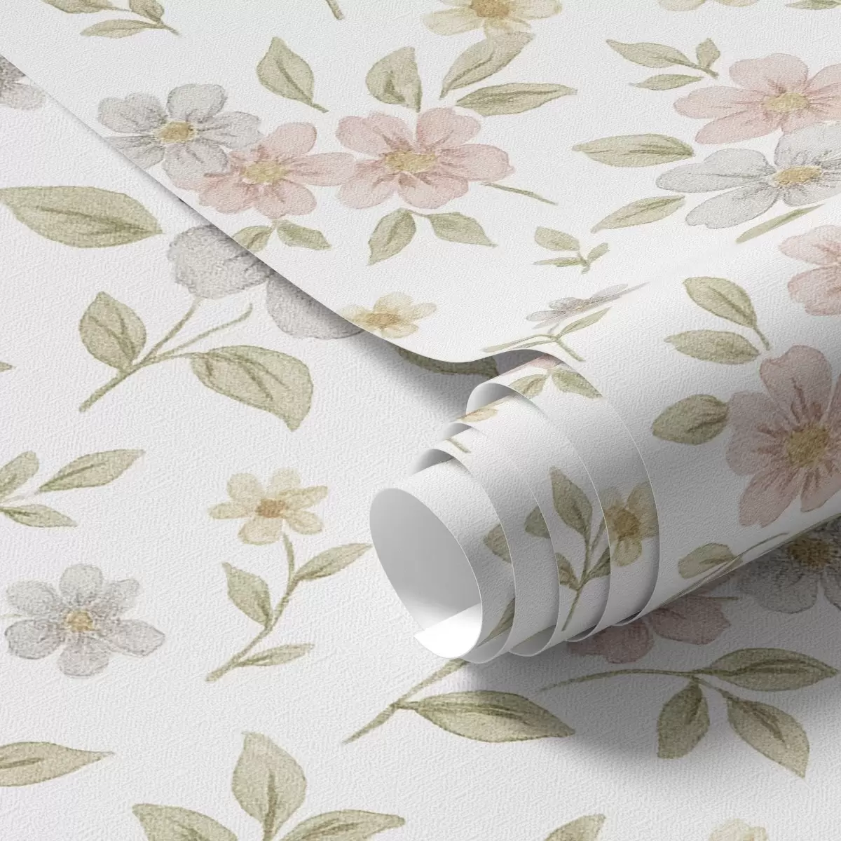 Tapete Kleine Aquarellblumen in Pastelltönen auf weißem Hintergrund Nr. a00596v1