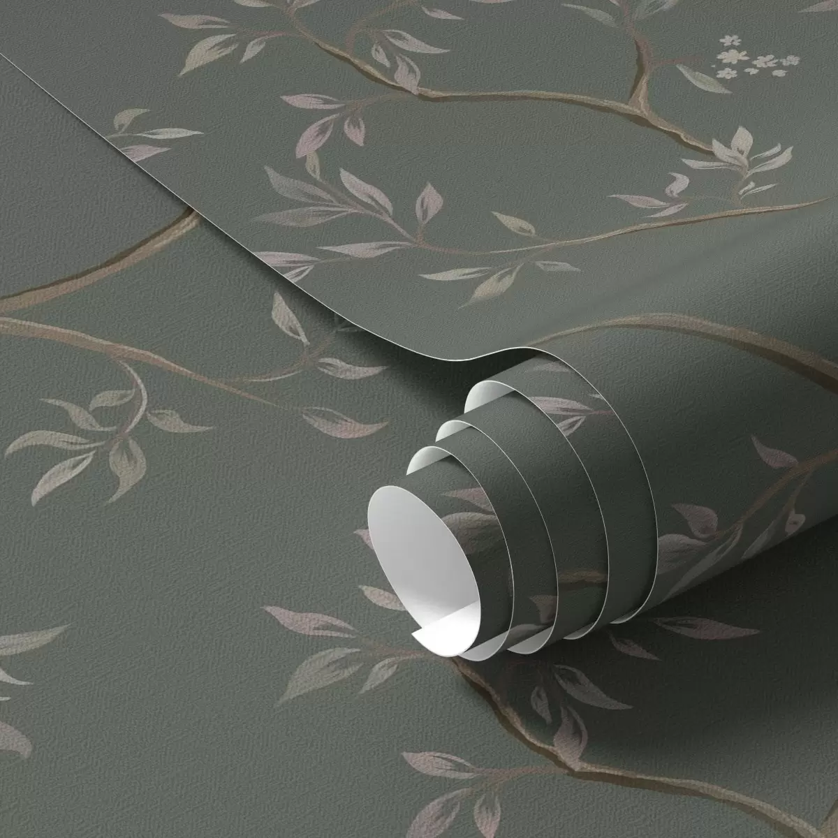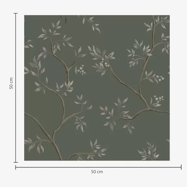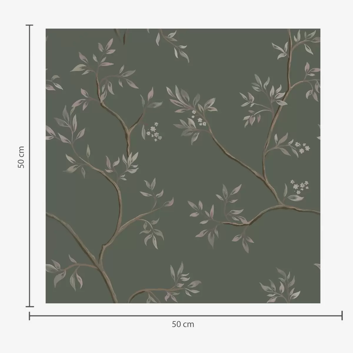 Tapete Zarte, blättrige Zweige auf dunkelgrünem Hintergrund Nr. a00597
