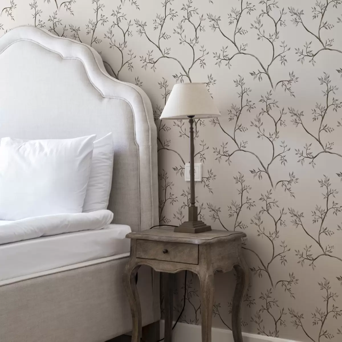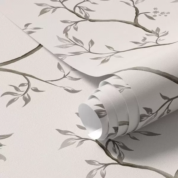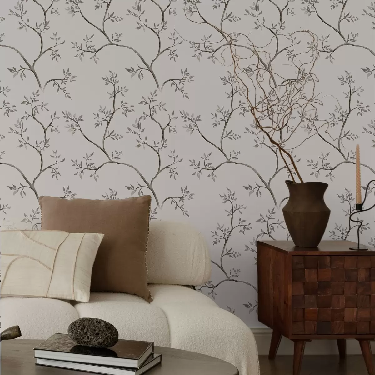 Tapete Zarte, blättrige Zweige auf warmem Cremehintergrund Nr. a00597v1