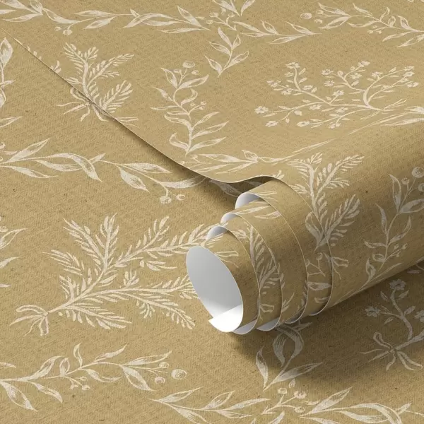 Tapete Weiße Kränze aus Kräutern und Blumen auf senffarbenem Hintergrund Nr. a00599