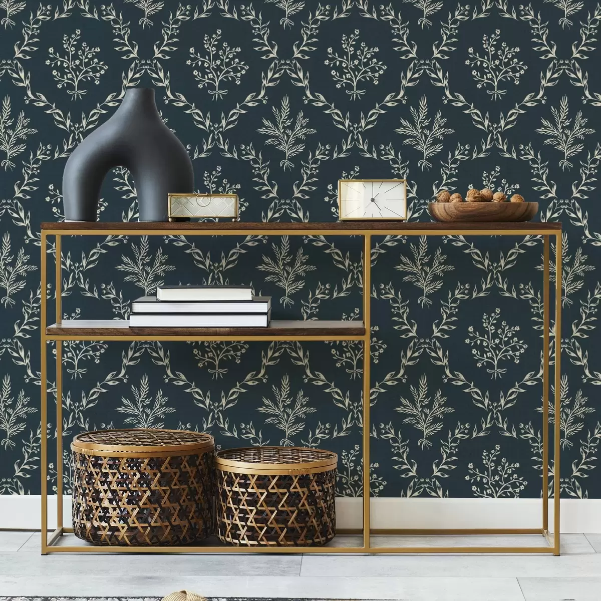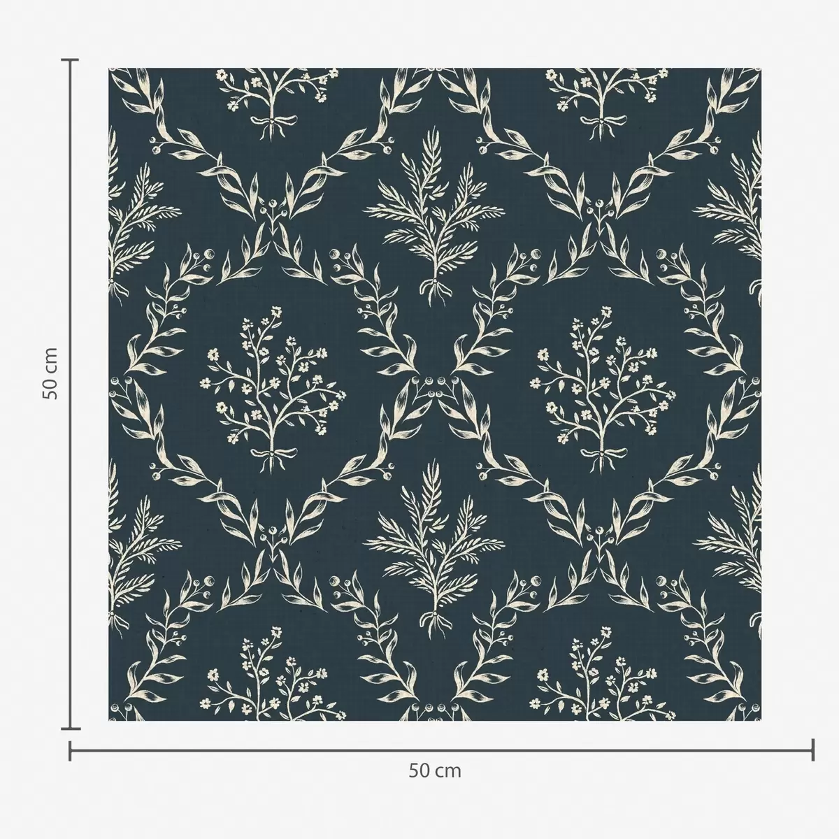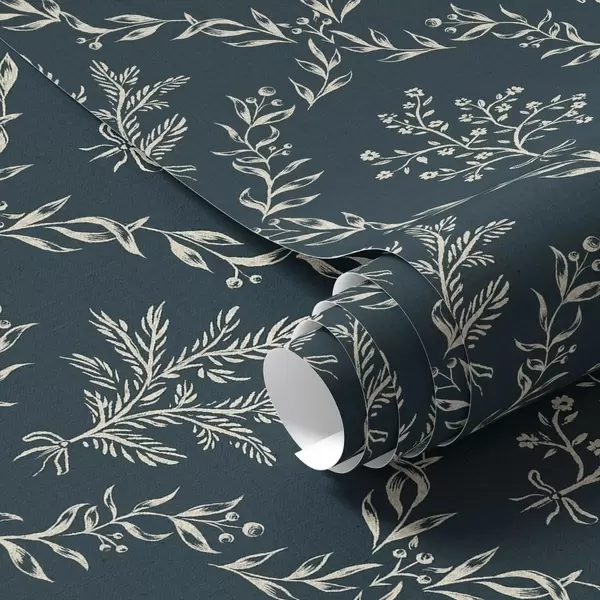 Tapete Weiße Kräuter- und Blumenkränze auf dunklem Blaugrün Nr. a00599v2