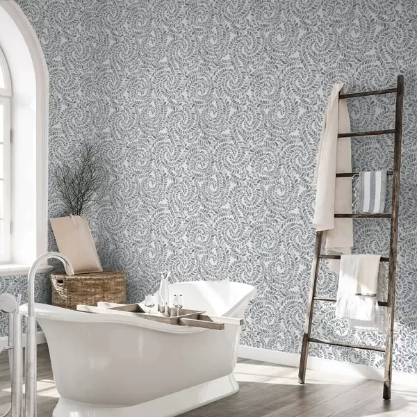 Tapete Blattartige Spiralen in kühlen Graublau-Tönen Nr. a00602v1