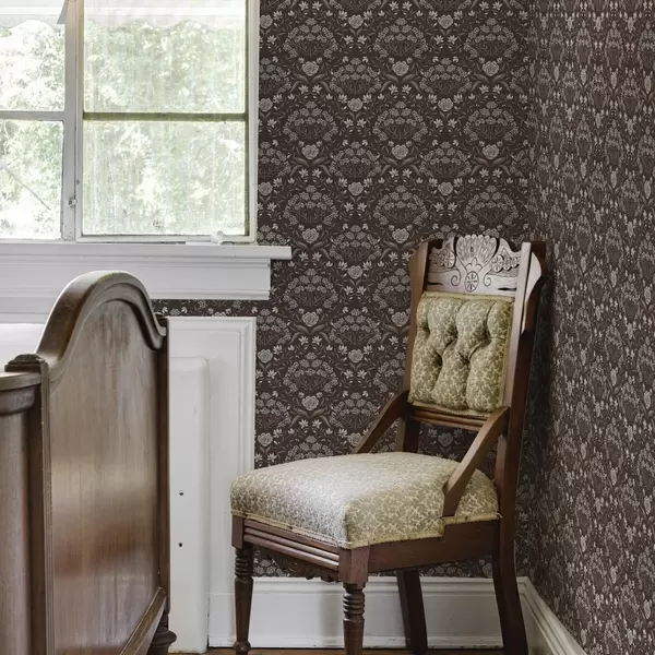 Tapete Dunkle Schokolade mit Pfingstrosen und Schneeglöckchen Nr. a00603v2