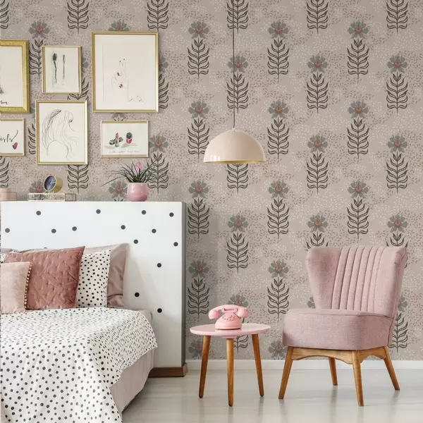 Tapete Stilisierte Blumen und Samen auf warmem Beige Nr. a00604