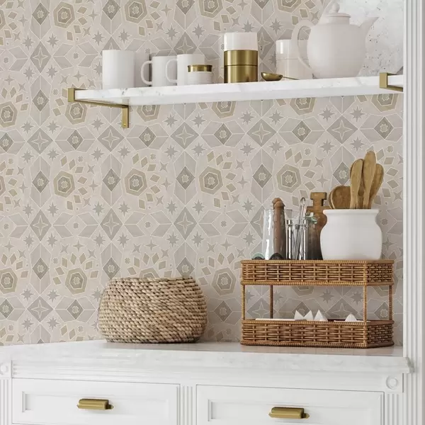 Tapete Geometrisches Mosaikmuster in warmen Beigetönen Nr. a00606