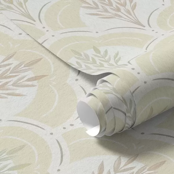 Tapete Weizen unter Bögen, sanfter cremegelber Aquarellgrund Nr. a00607
