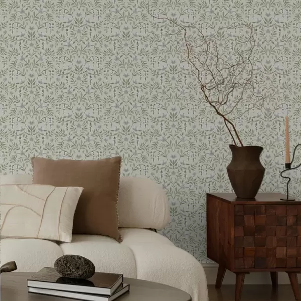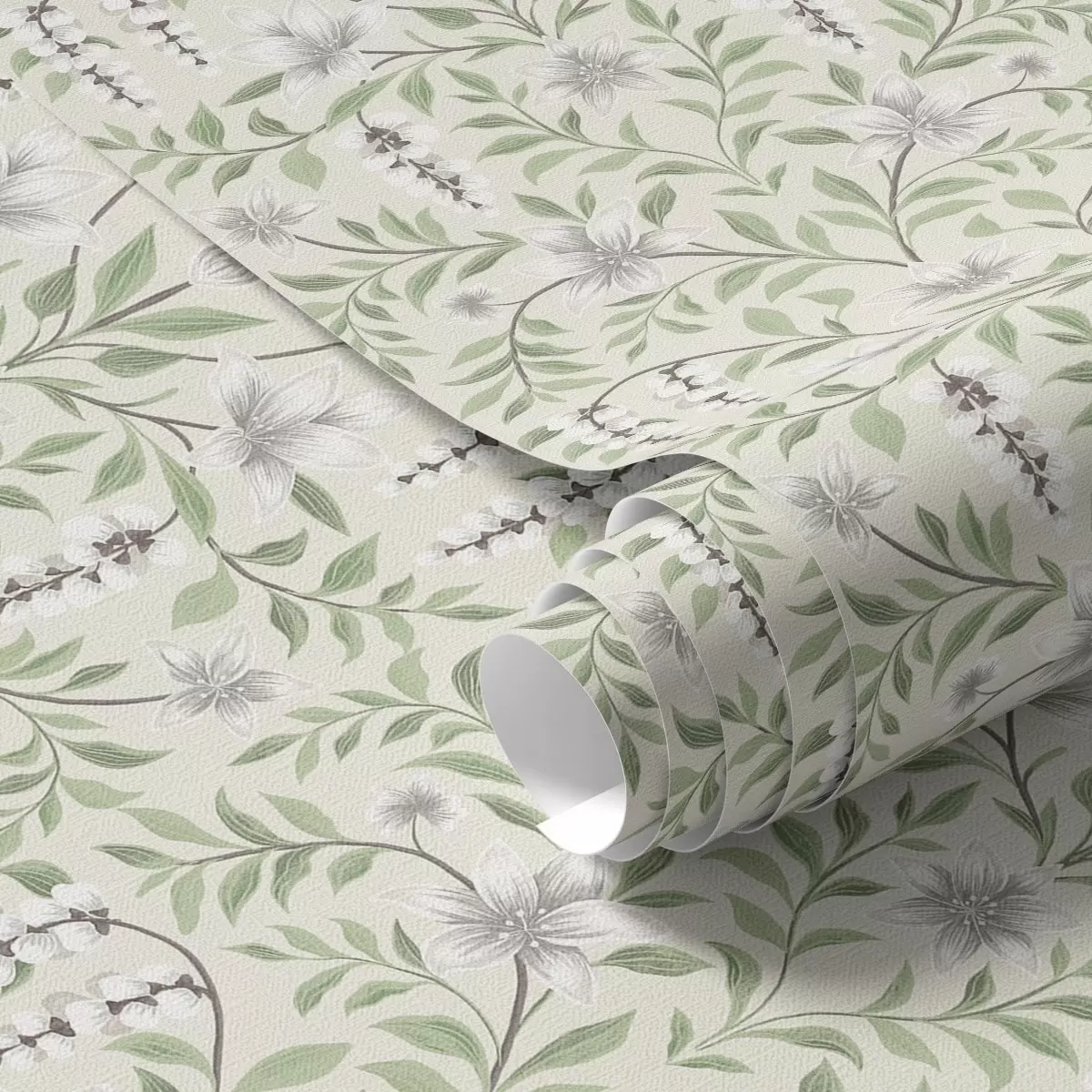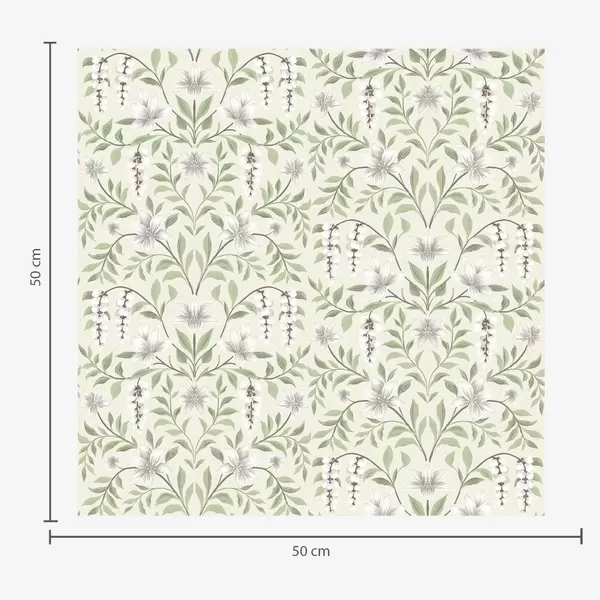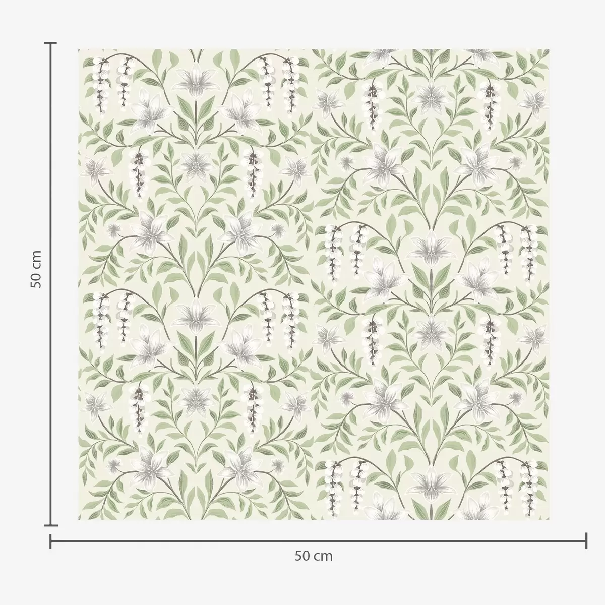 Tapete Leichtes Rankenornament mit weißen Blüten, symmetrisch Nr. a00609