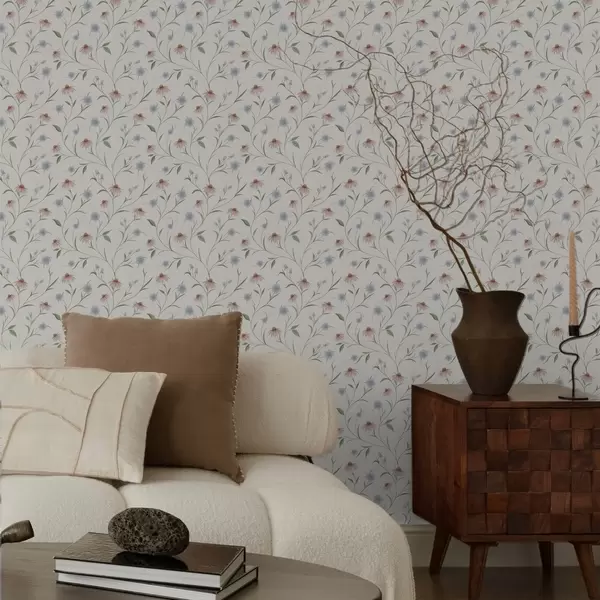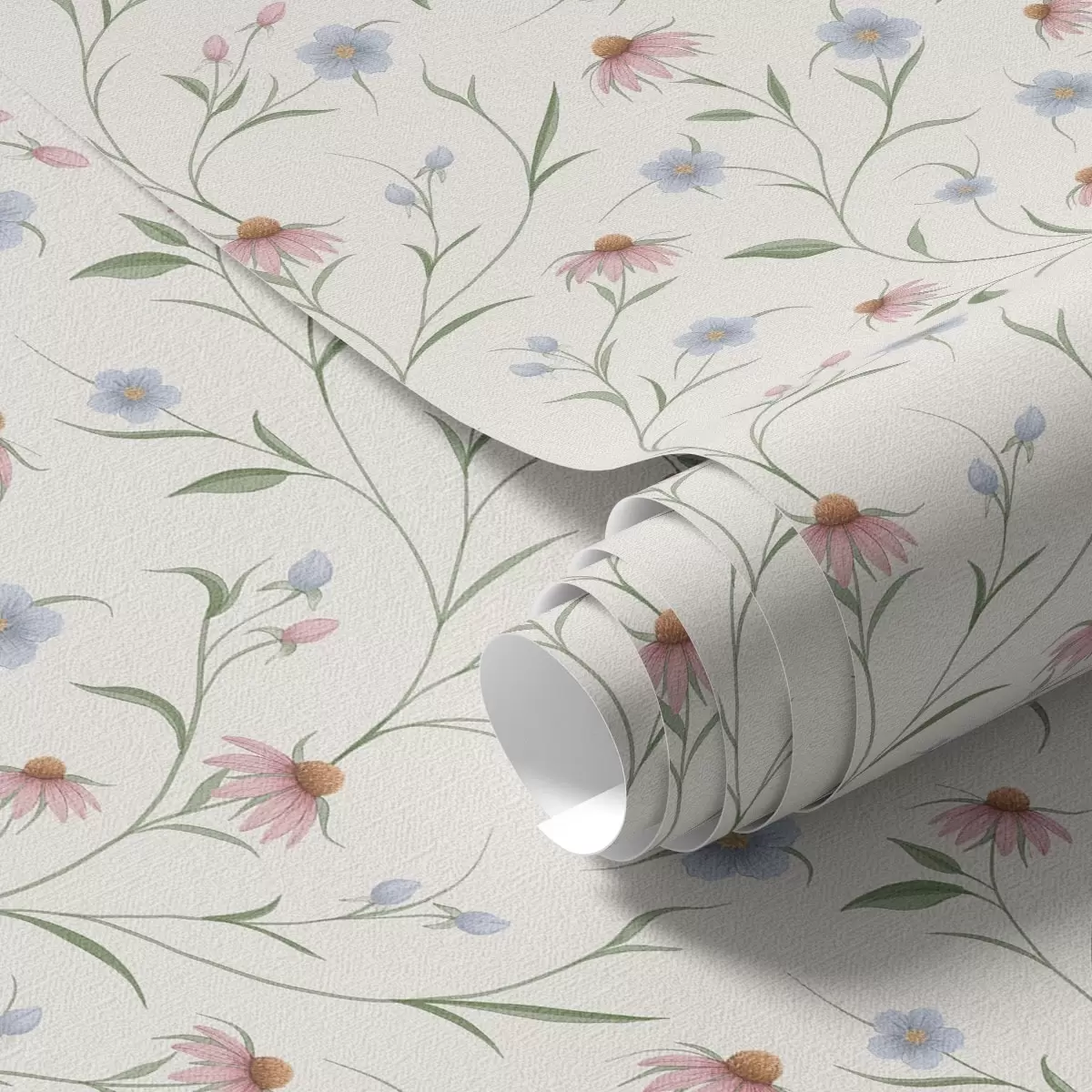 Tapete Wiesenblumen und Echinacea auf cremefarbenem Hintergrund, Leichtigkeit Nr. a00614
