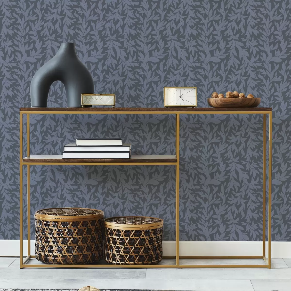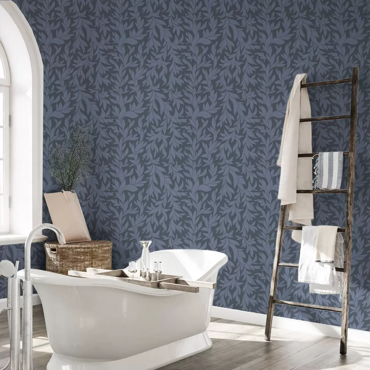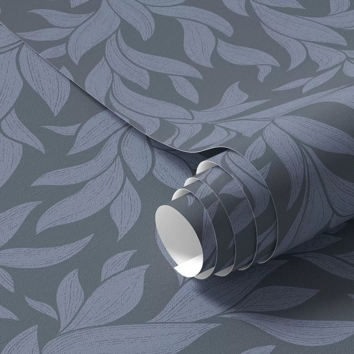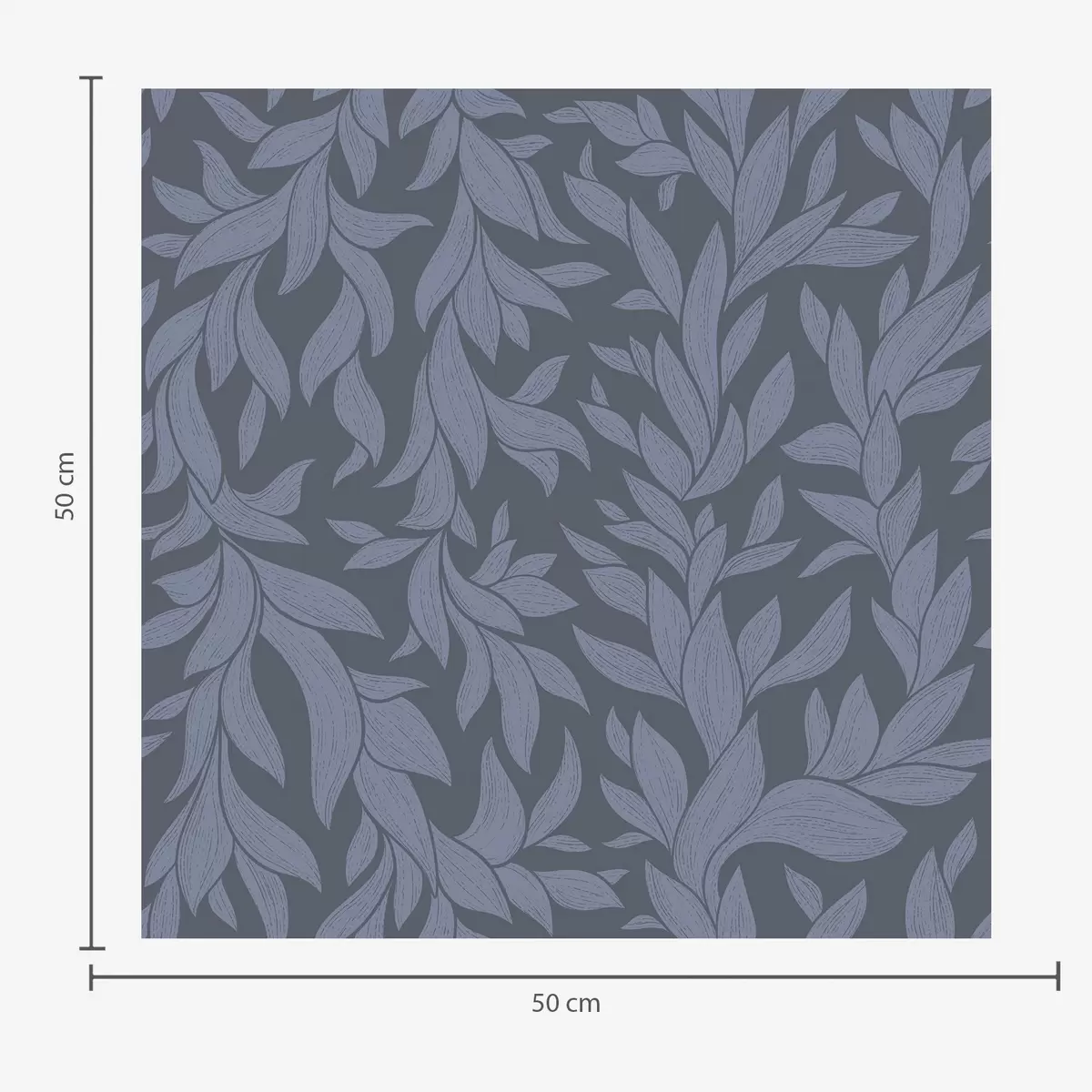 Tapete Graphitblauer Hintergrund und blaue Blätter, strukturierter Strich Nr. a00616v2