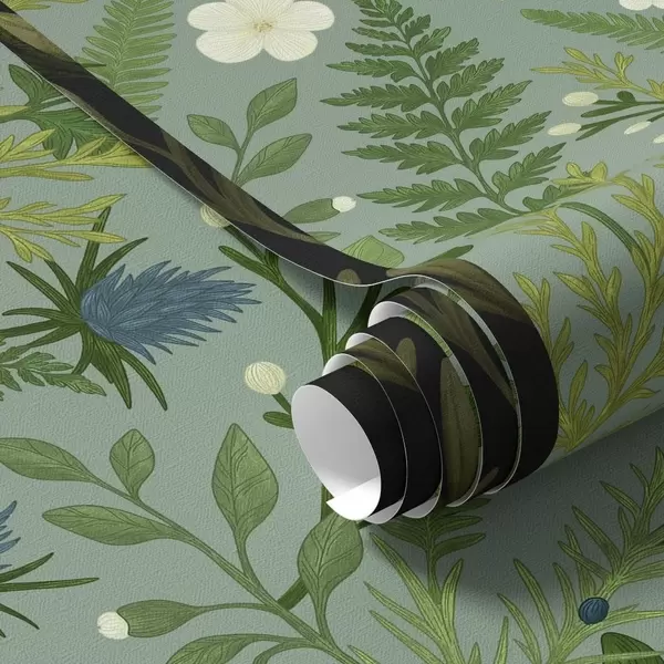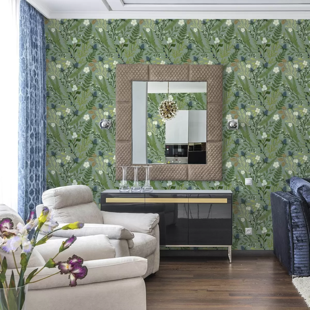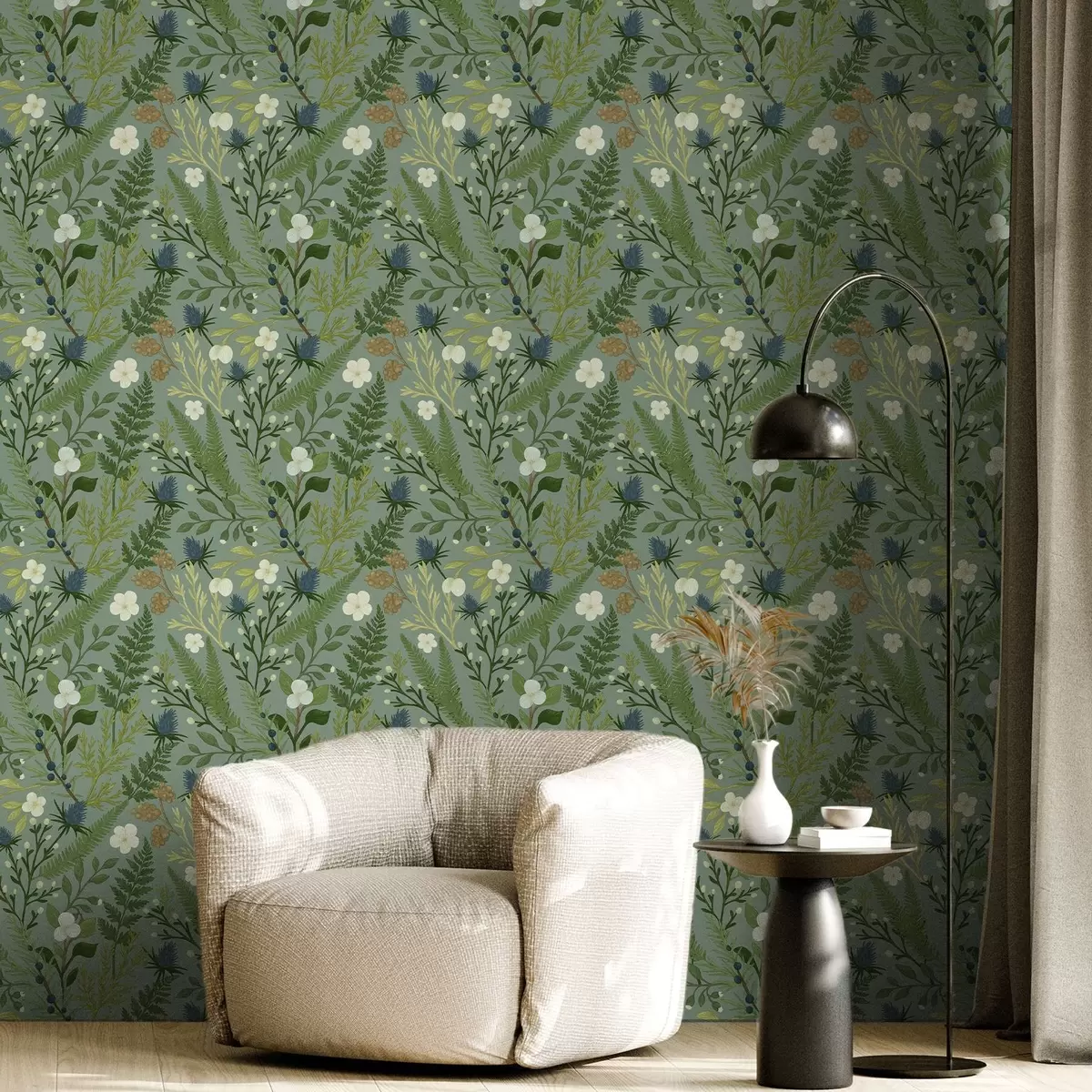 Tapete Waldkräuter, Chicorée und Beeren auf Minzhintergrund Nr. a00621v1