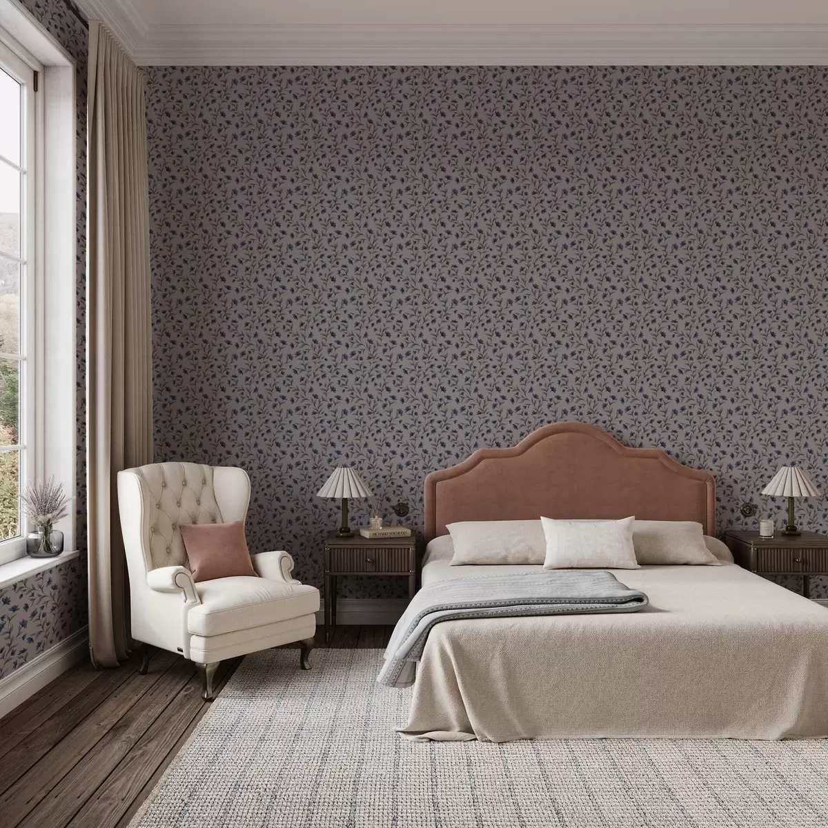 Tapete Glockenblumen auf einem puderrosa Hintergrund Nr. a00622v2