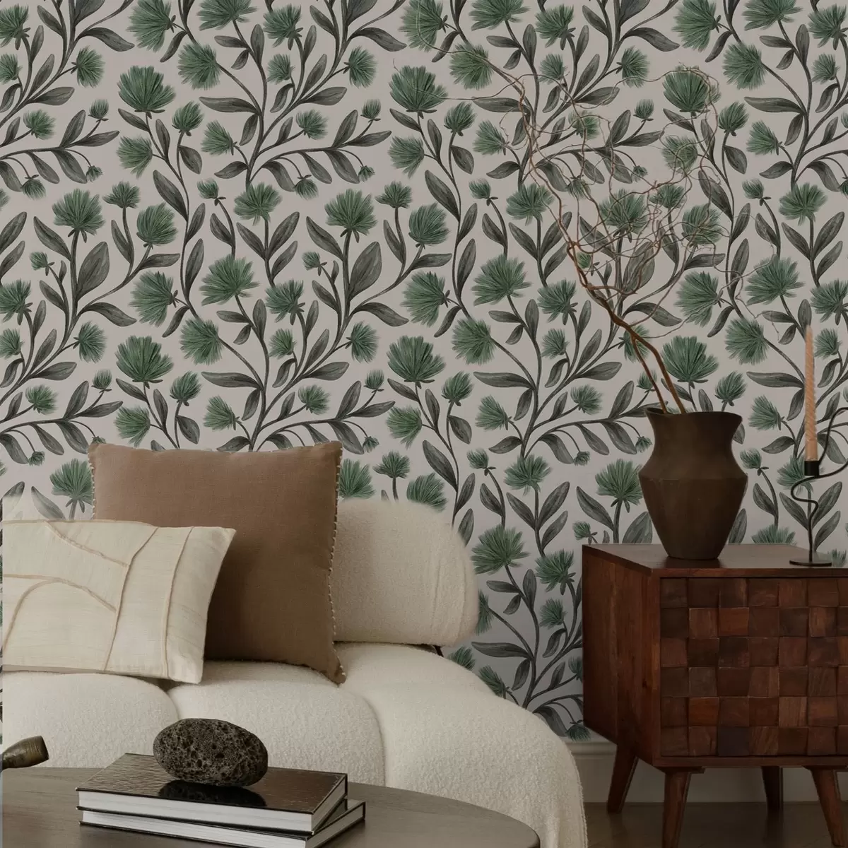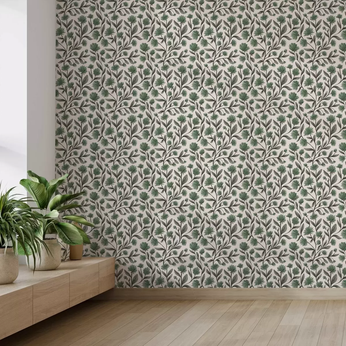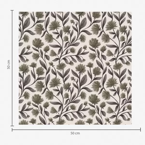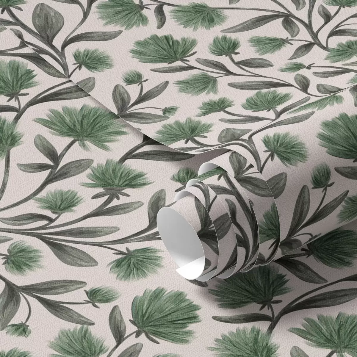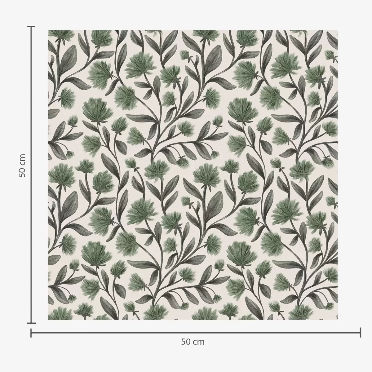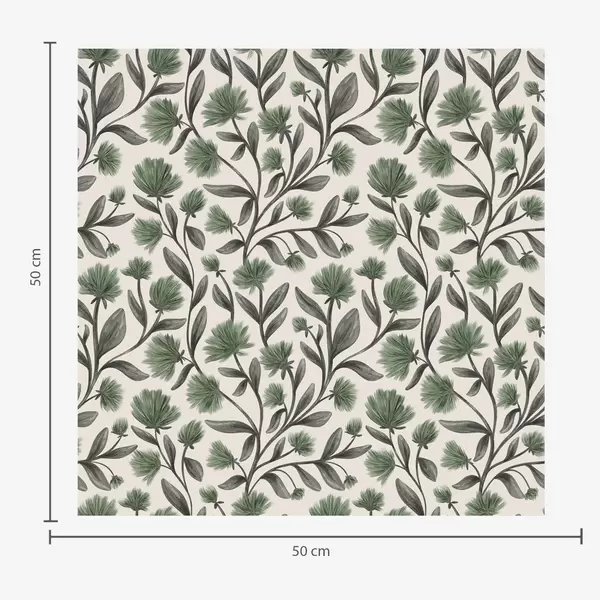 Tapete Wildblumen in grünen Farbtönen auf cremefarbenem Hintergrund Nr. a00623v3
