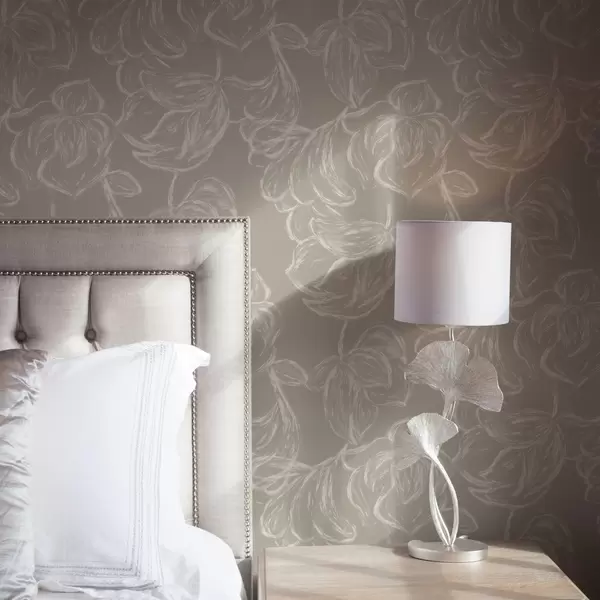 Tapete Cremefarbene Blumenumrisse auf warmem Taupe-Hintergrund Nr. a00625v2