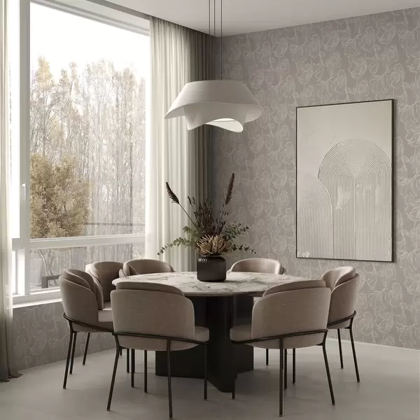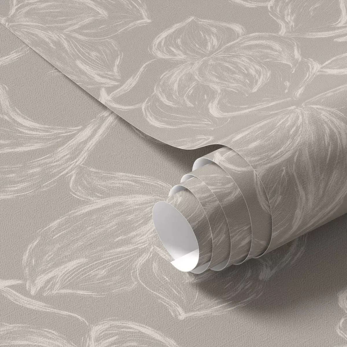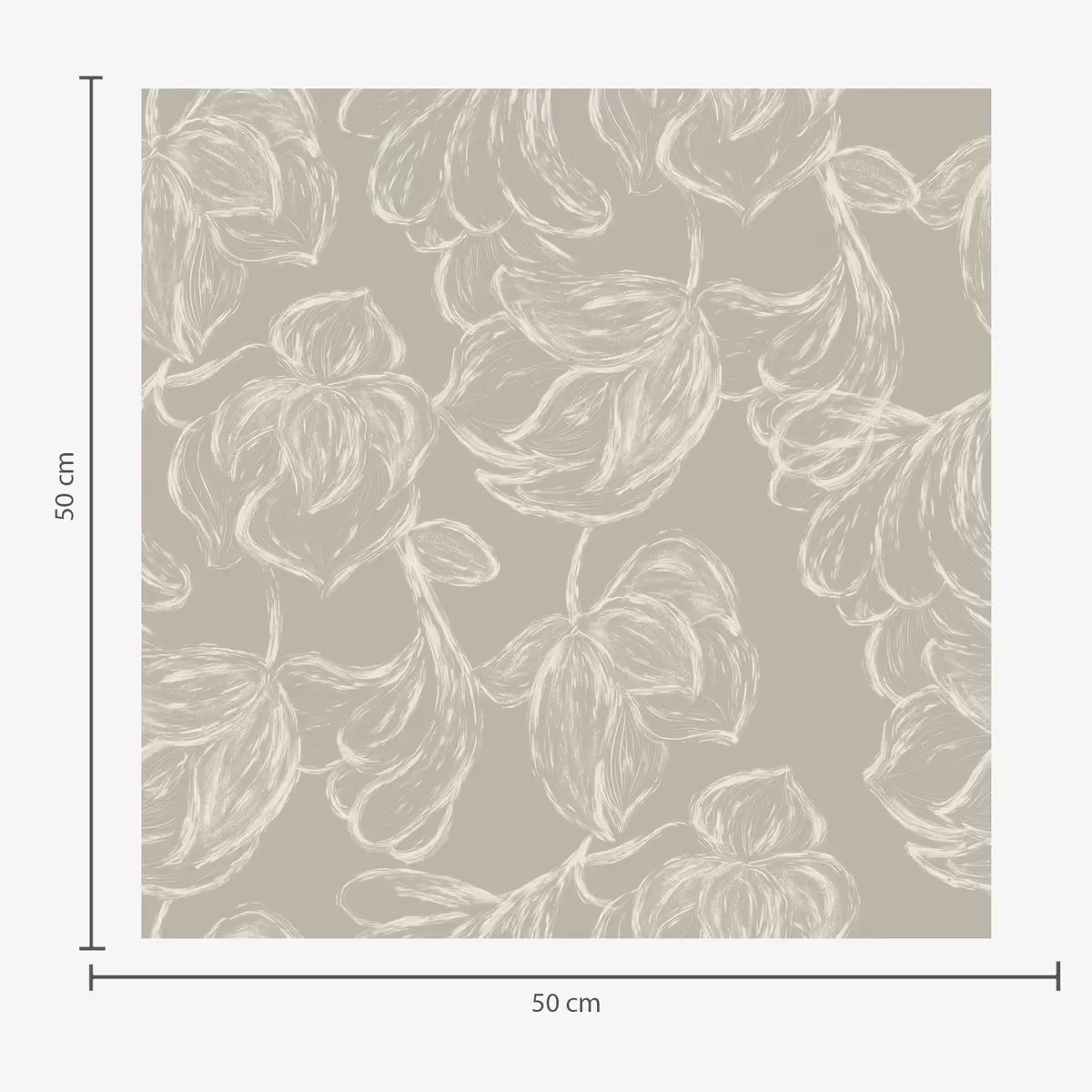 Tapete Cremefarbene Blumenumrisse auf warmem Taupe-Hintergrund Nr. a00625v2