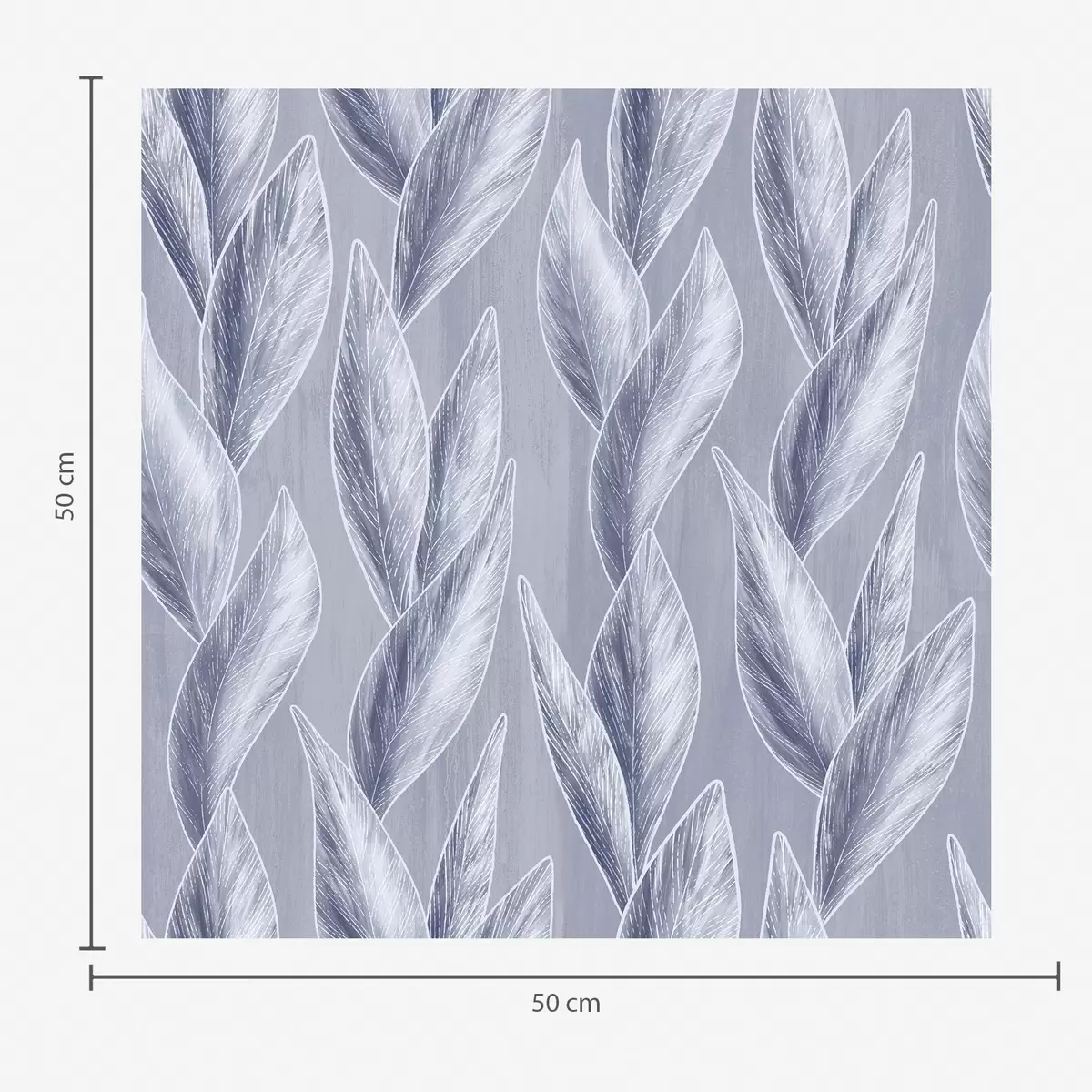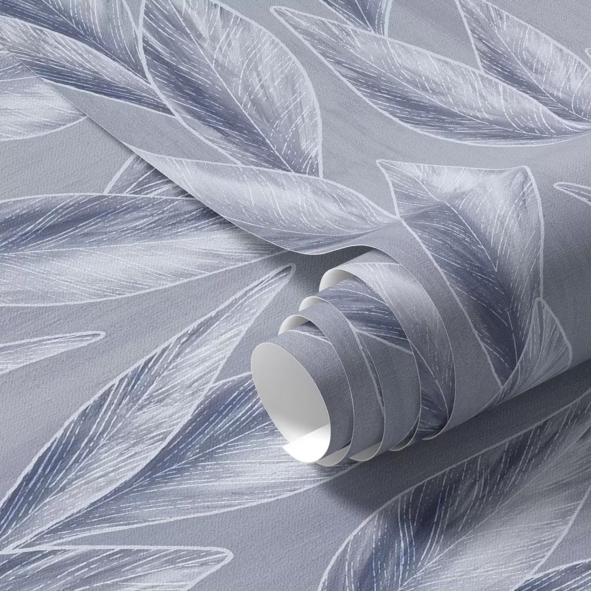 Tapete Silberblaue Blätter auf grau-blauem Hintergrund, grafisches Muster Nr. a00627