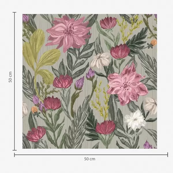 Tapete Üppige rosa und cremefarbene Blumen auf grauem Hintergrund, pastose Textur Nr. a00629