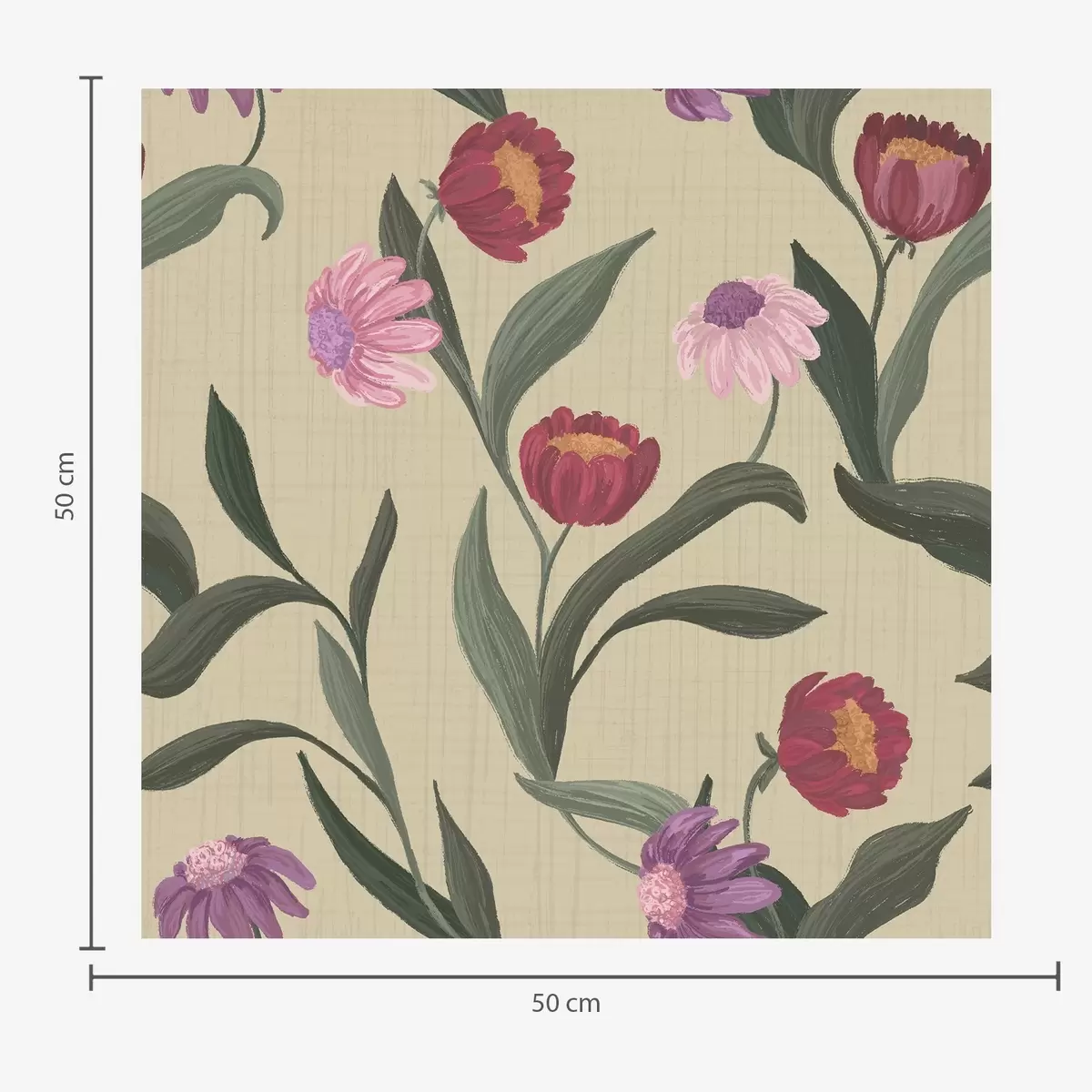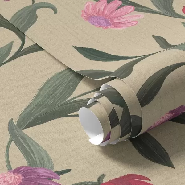 Tapete Rosa-rote Blumen auf beigem Hintergrund, handgezeichnete Textur Nr. a00631