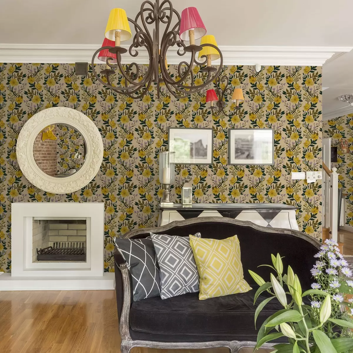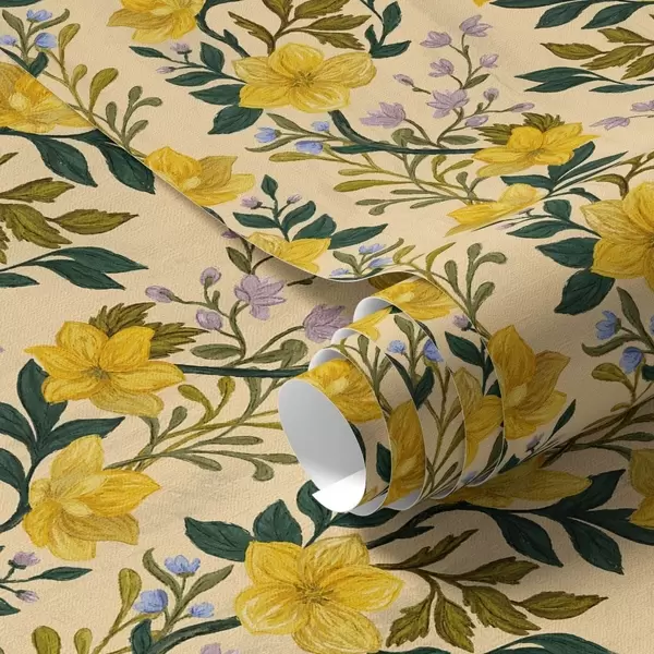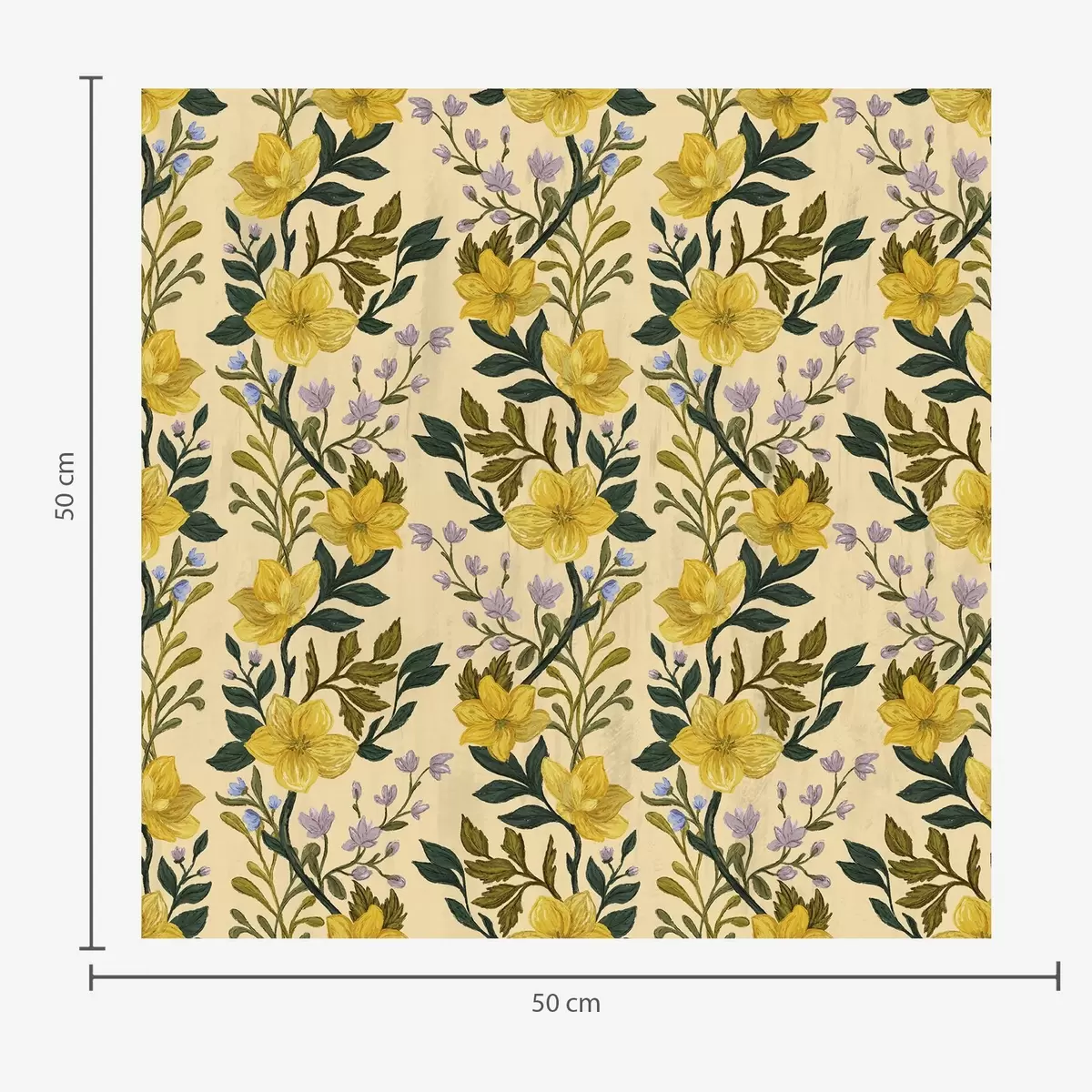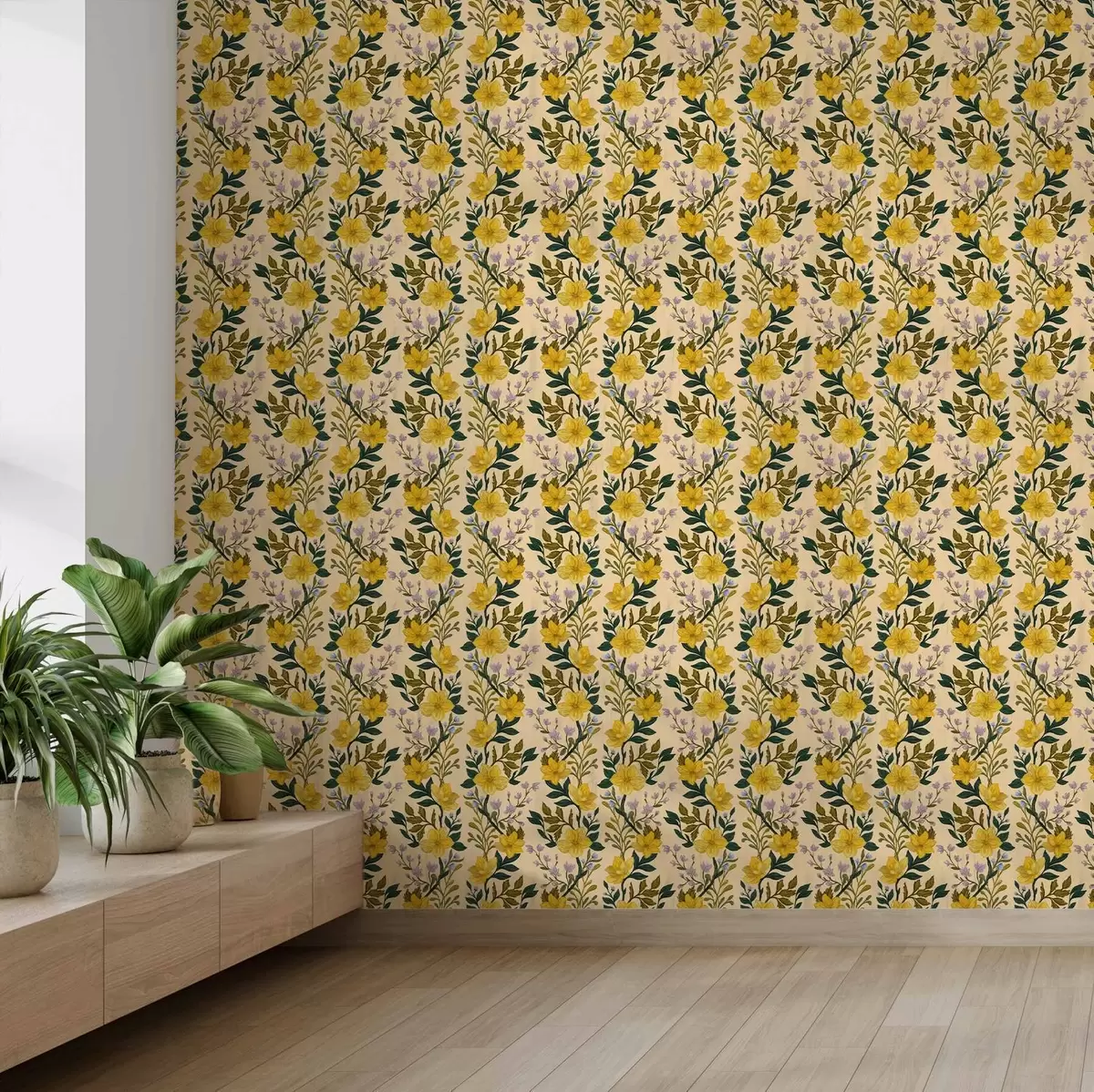 Tapete Gelbe Blumen in vertikalen Girlanden auf cremefarbenem Hintergrund Nr. a00632