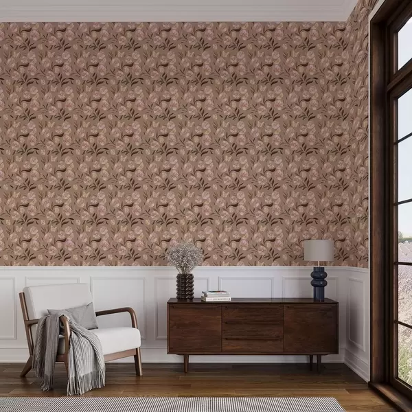 Tapete Rosa Blumen und Schmetterlinge auf einem warmen braunen Hintergrund Nr. a00633v1