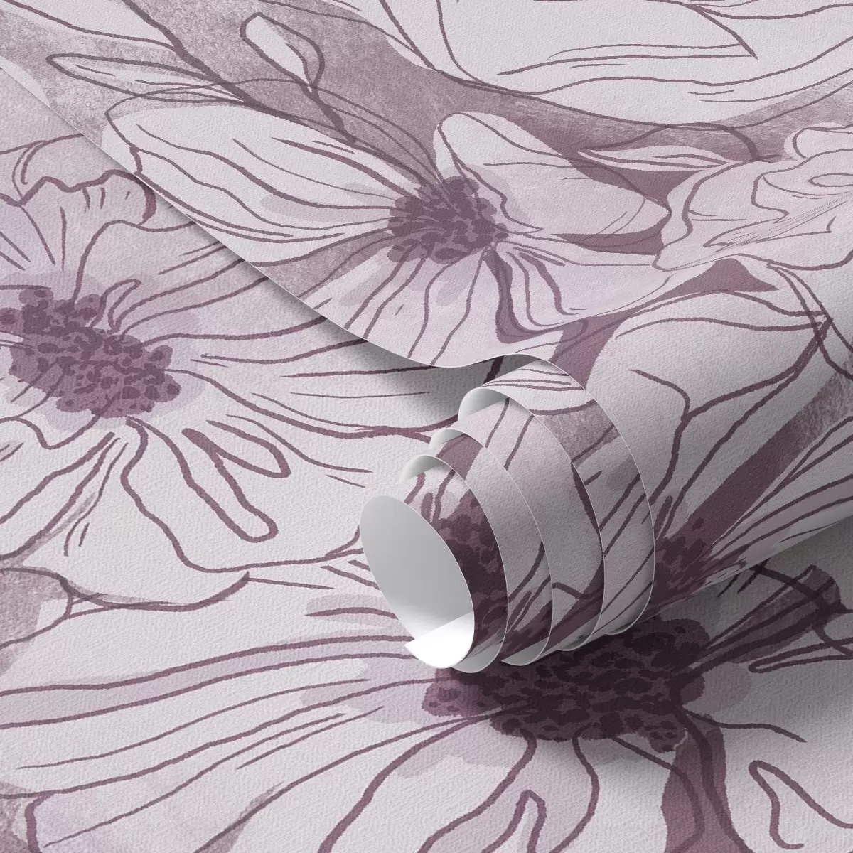 Tapete Lineare Blumen in einer kühlen lila-rosa Farbpalette Nr. a00636v1