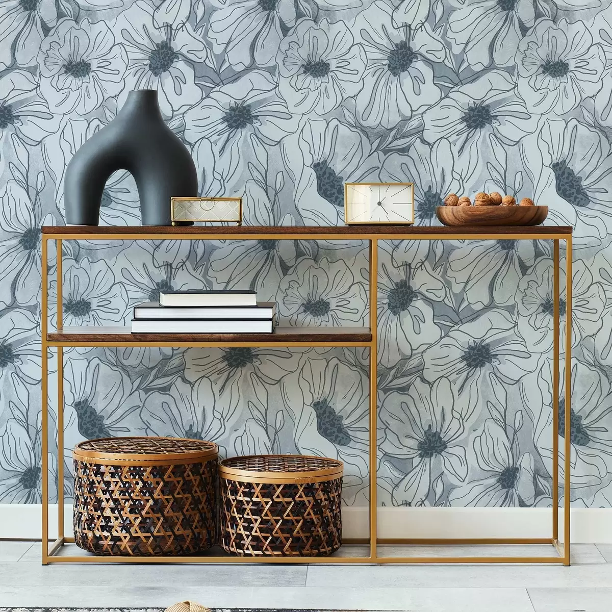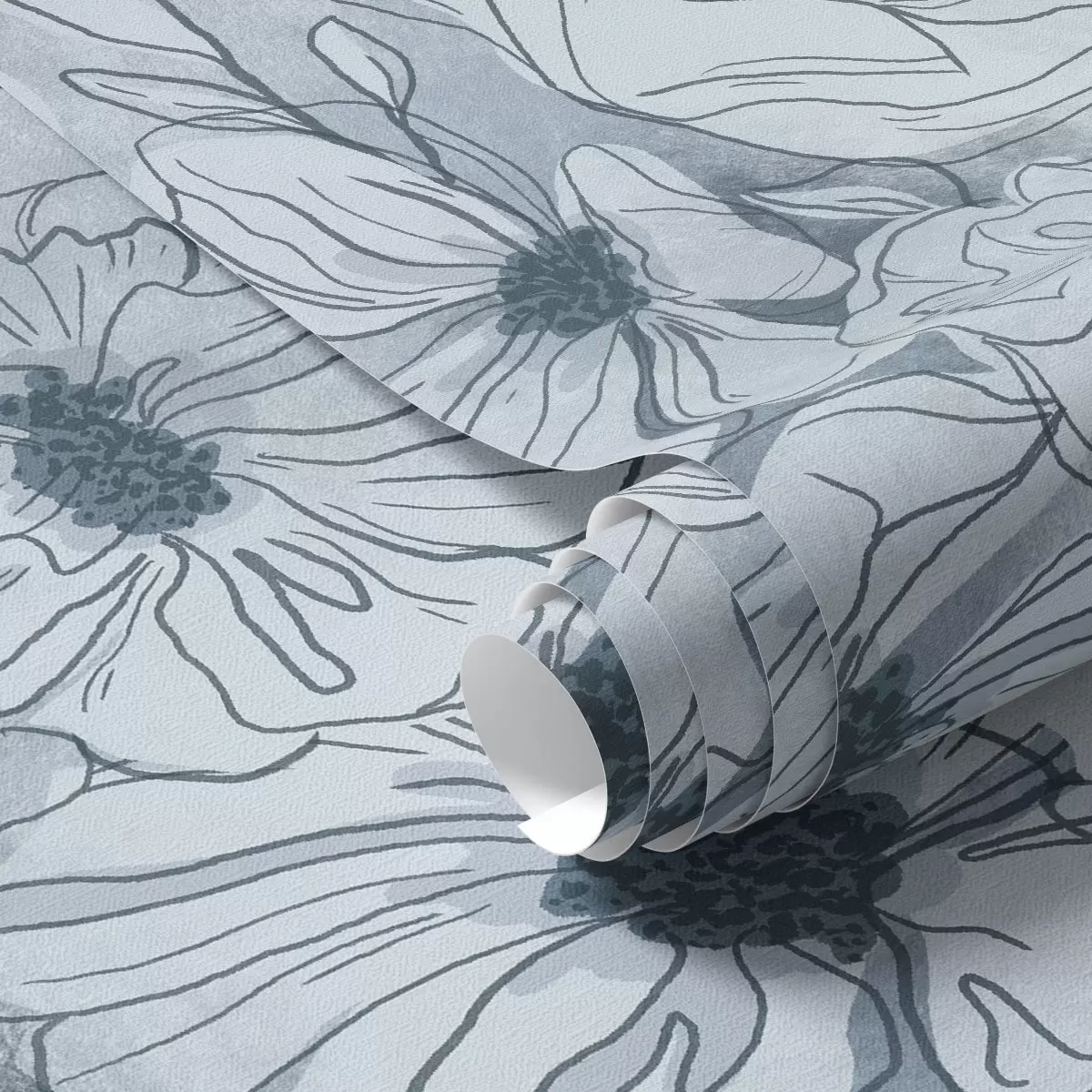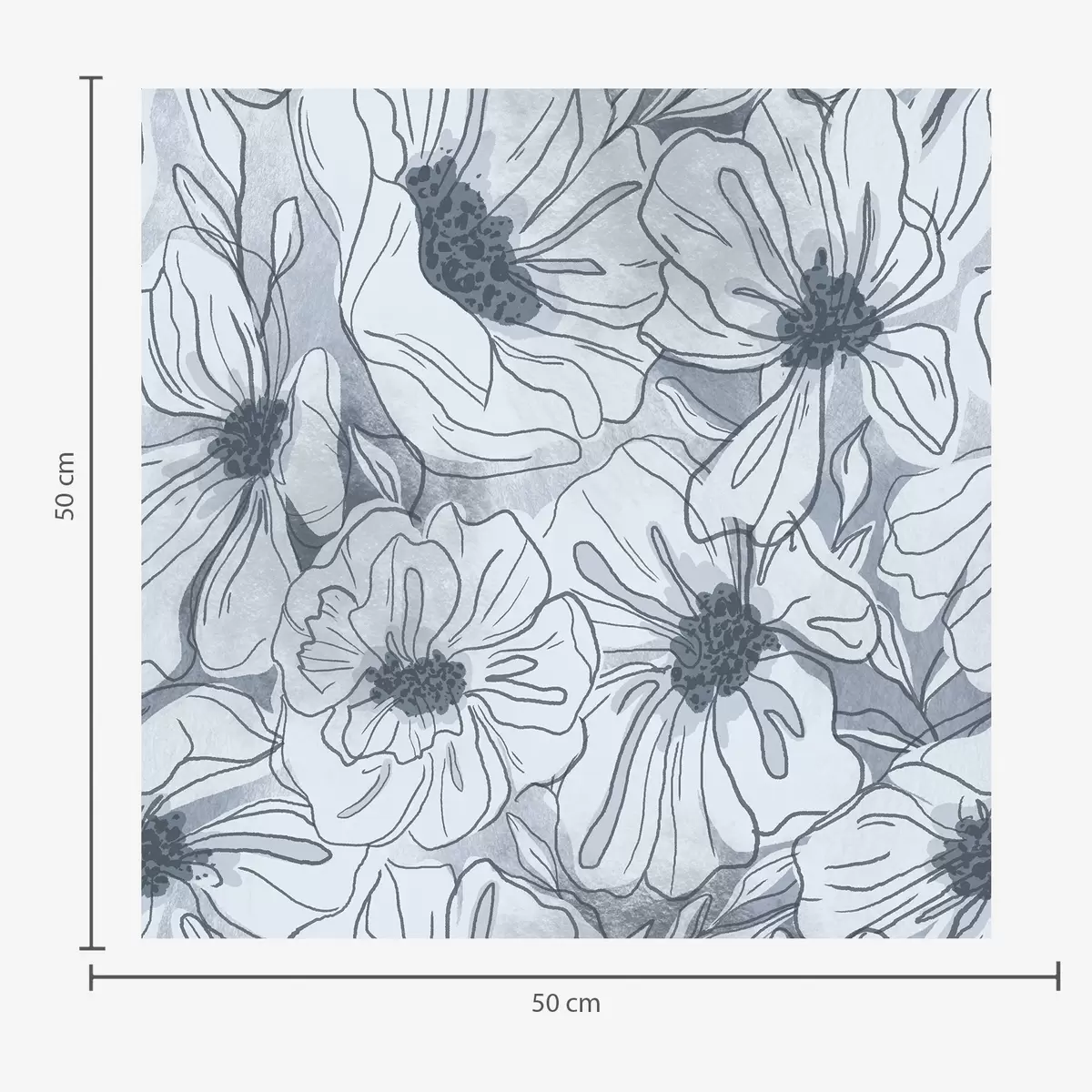 Tapete Lineare Blumen in einer kühlen grau-blauen Farbpalette Nr. a00636v2