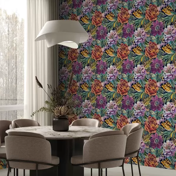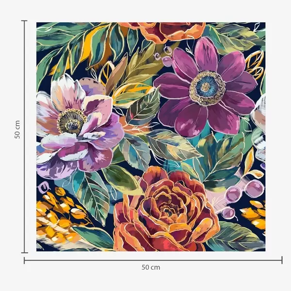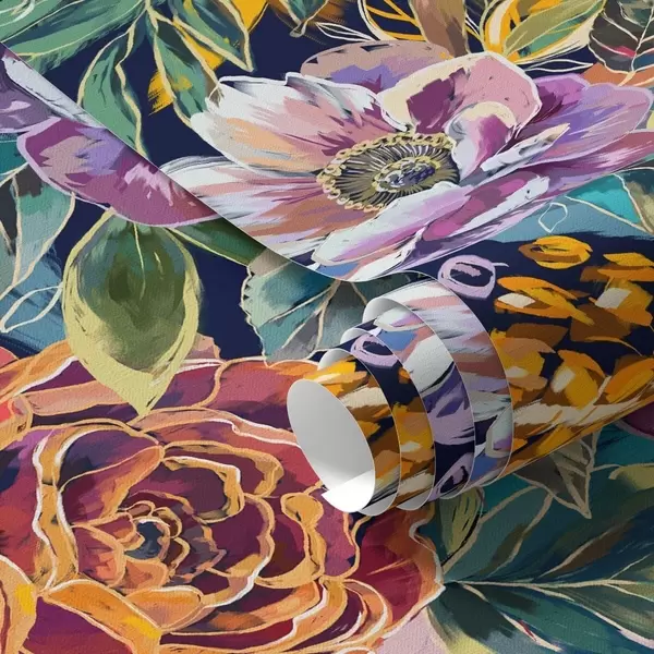 Tapete Kräftige, großflächige, mit Pinsel gemalte Blumen auf dunkelblauem Hintergrund Nr. a00643