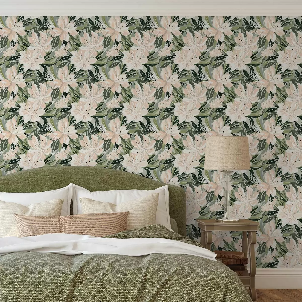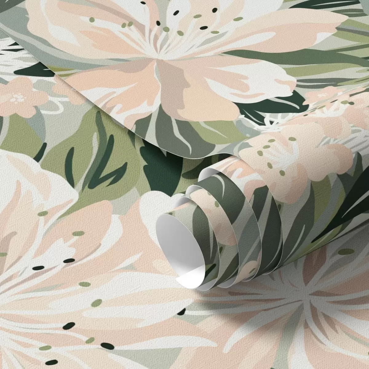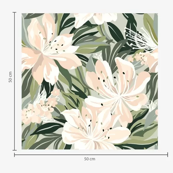 Tapete Große cremefarbene Blüten auf hellgrünem Hintergrund Nr. a00646