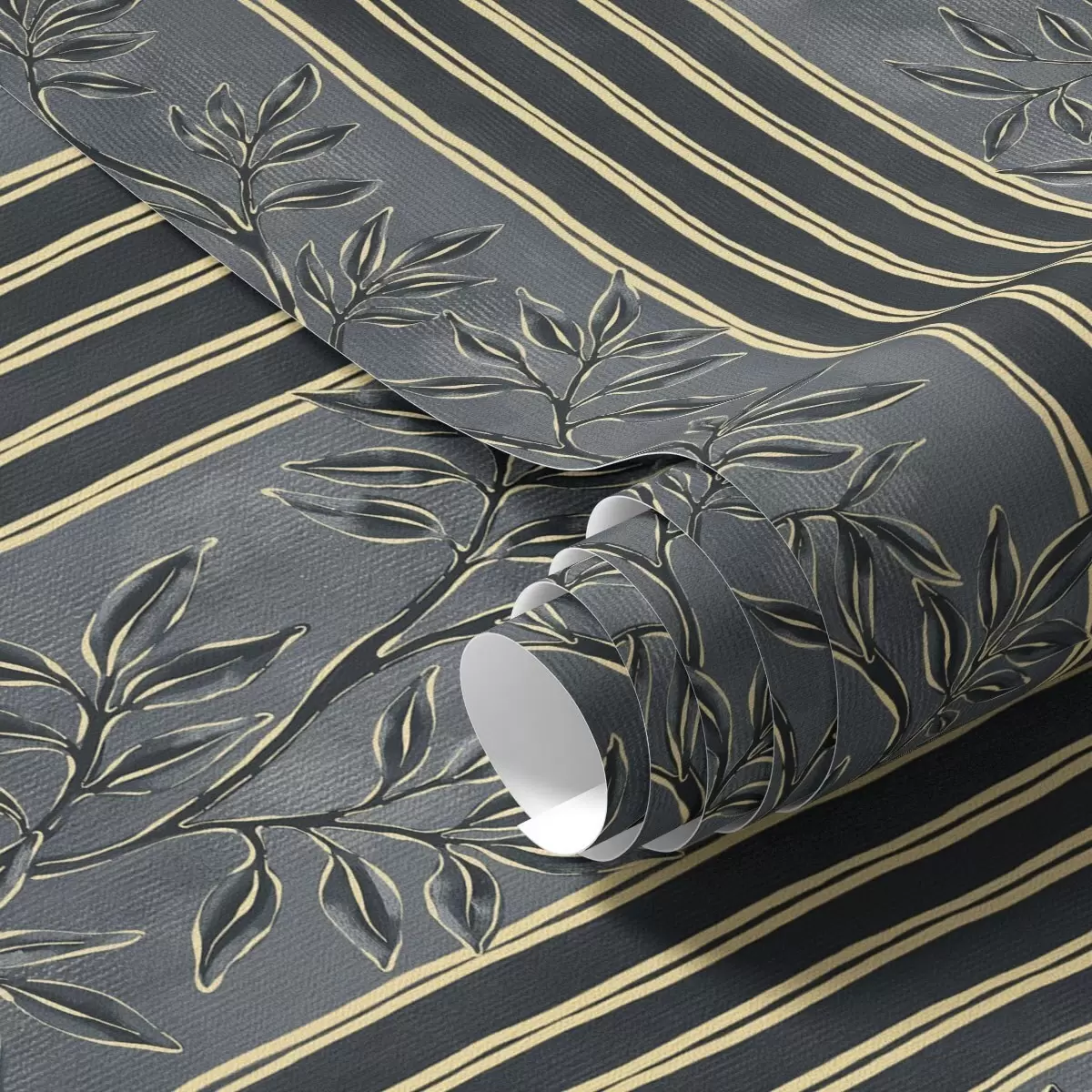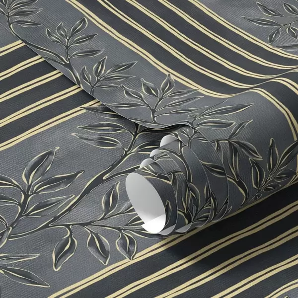 Tapete Vertikale Streifen mit botanischen Mustern in dunklen Farbtönen Nr. a00648