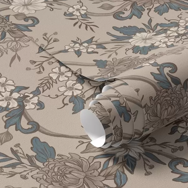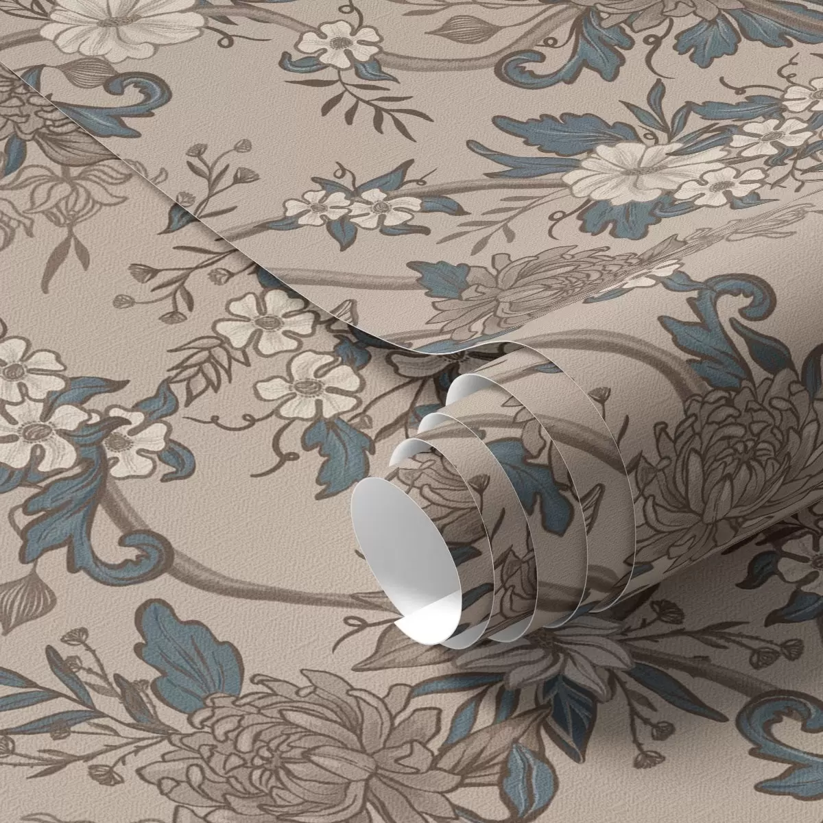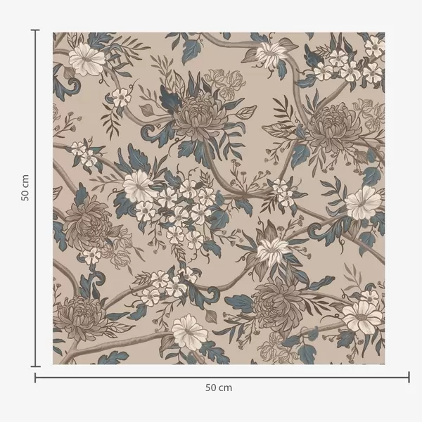 Tapete Große Blumen mit gemusterten Blättern auf warmem beigem Hintergrund Nr. a00649