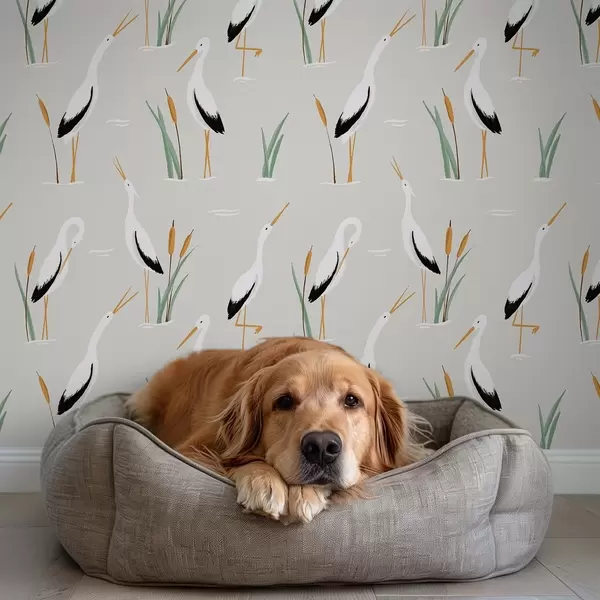 Tapete Reiher zwischen Schilf auf hellgrauem Hintergrund Nr. a00650