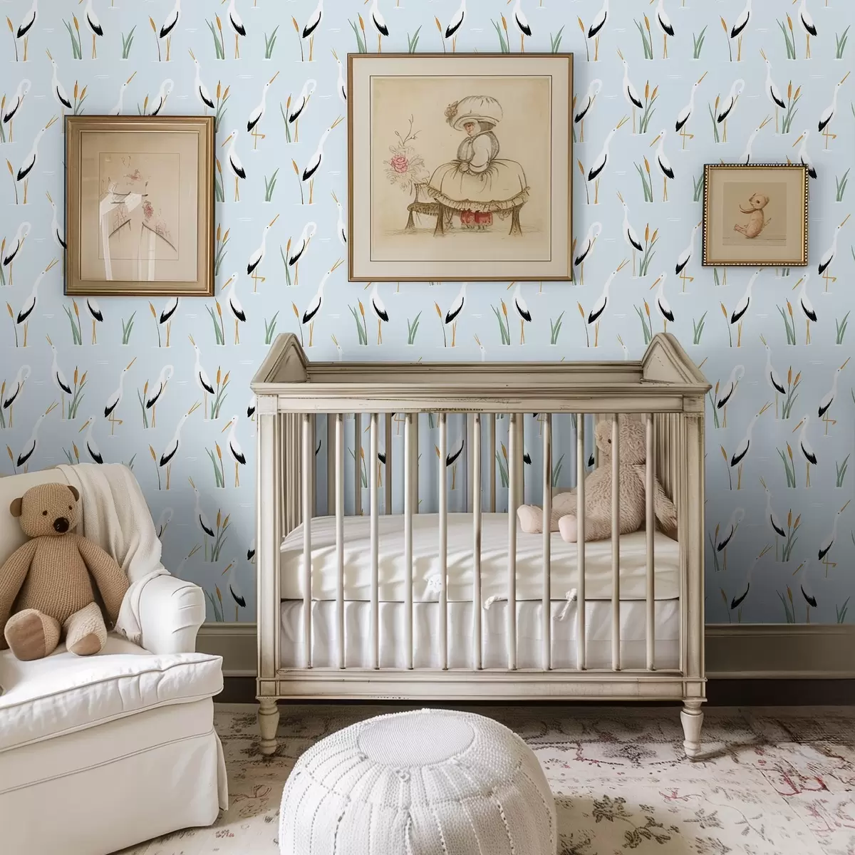 Tapete Reiher zwischen Schilf vor einem sanften blauen Hintergrund Nr. a00650v3