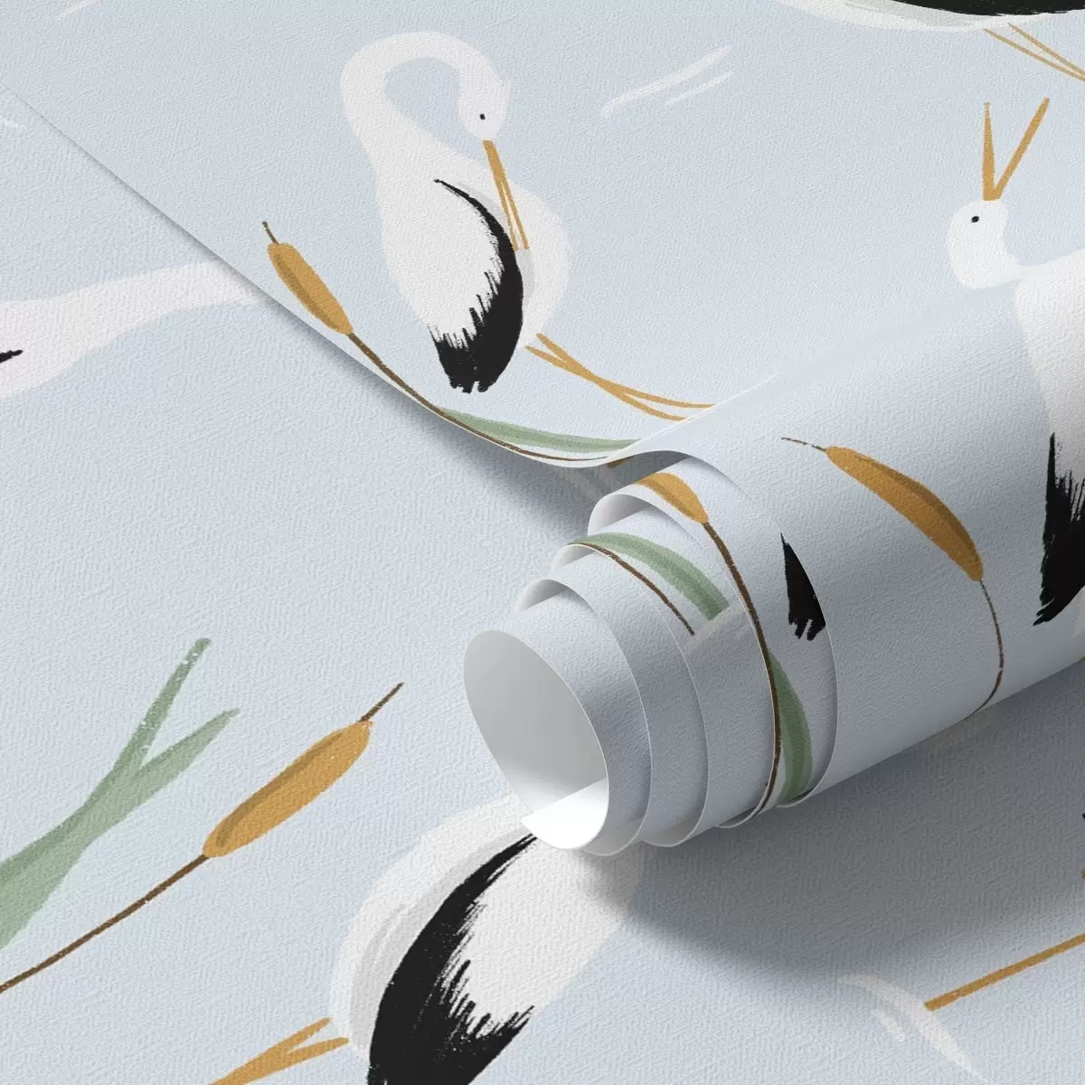 Tapete Reiher zwischen Schilf vor einem sanften blauen Hintergrund Nr. a00650v3