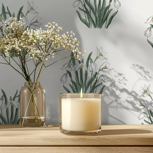 Tapete Schneeglöckchen mit grünen Blättern auf hellgrauem Hintergrund Nr. a00651v1