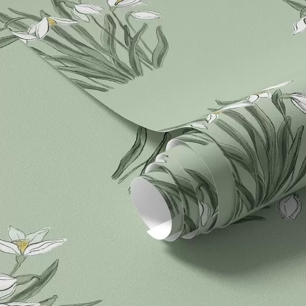 Tapete Schneeglöckchen mit grünen Blättern auf einem zartgrünen Hintergrund Nr. a00651v4