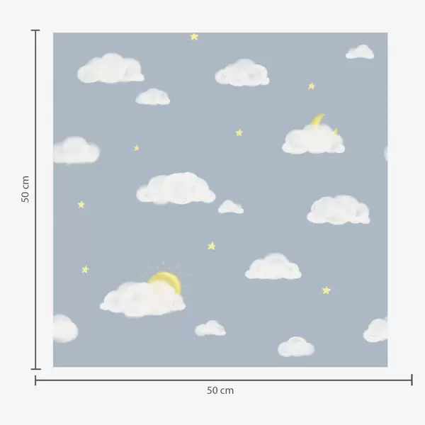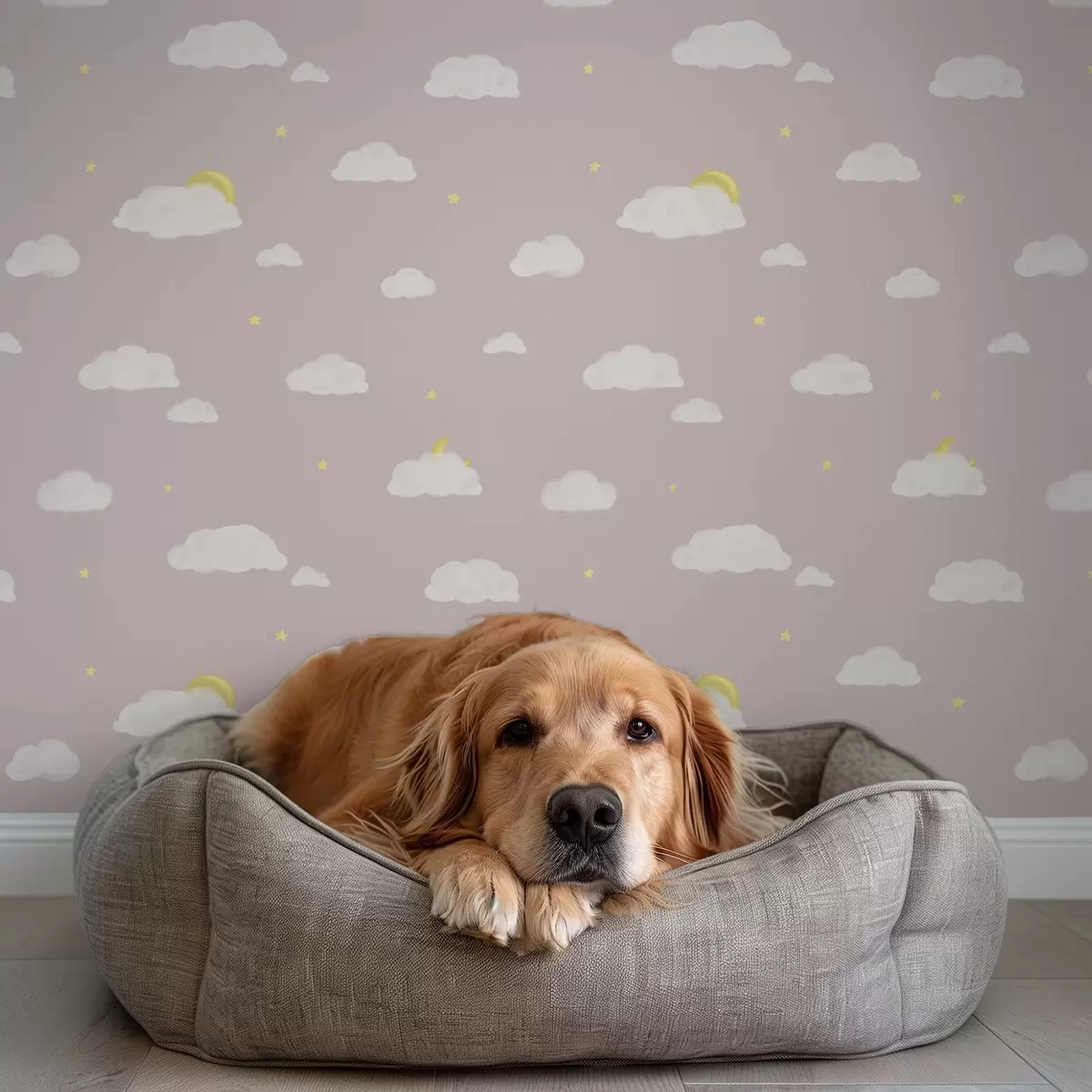 Tapete Weiche Wolken, Sterne und Sonne auf einem rosafarbenen grauen Hintergrund Nr. a00652v2