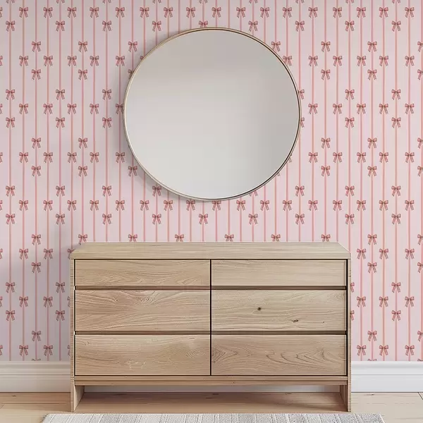Tapete Vertikale Bänder mit Schleifen, puderrosa Hintergrund Nr. a00653v2