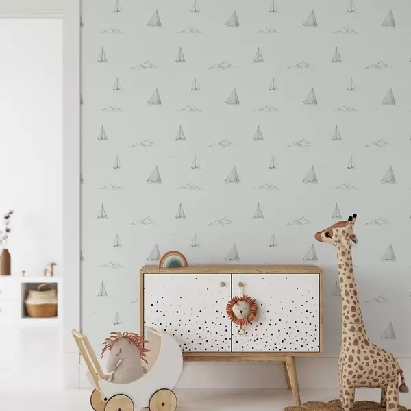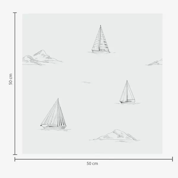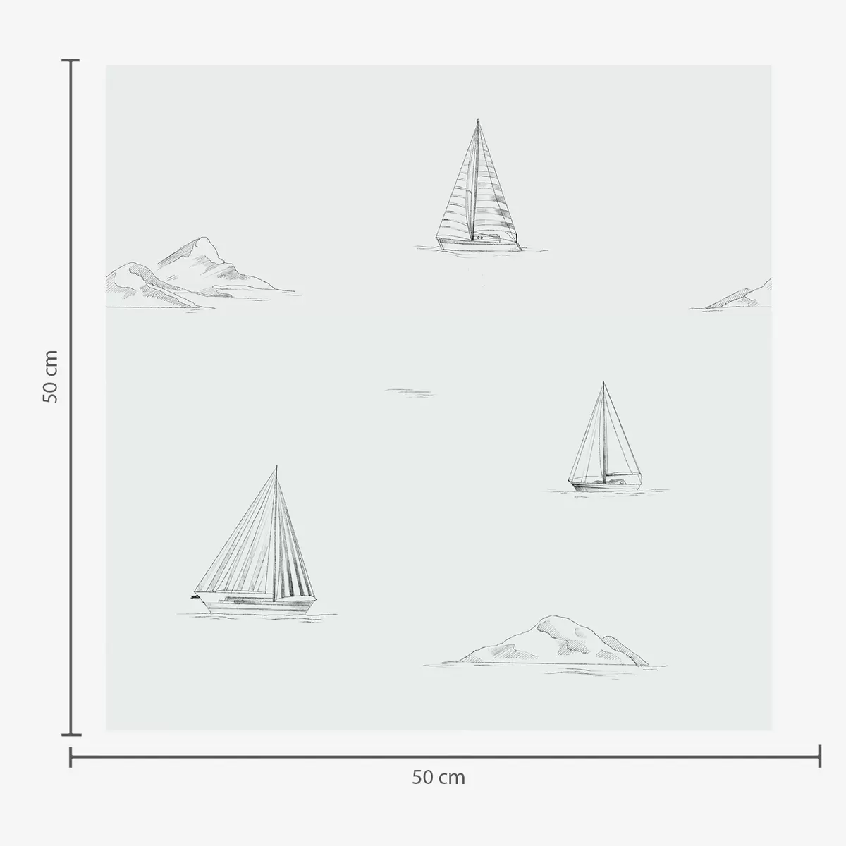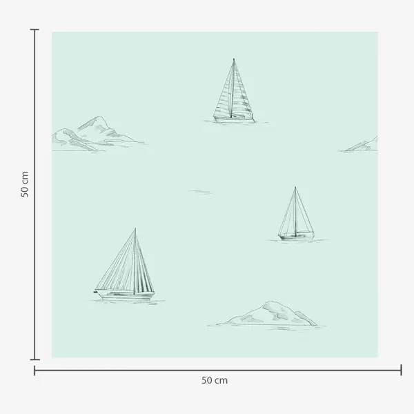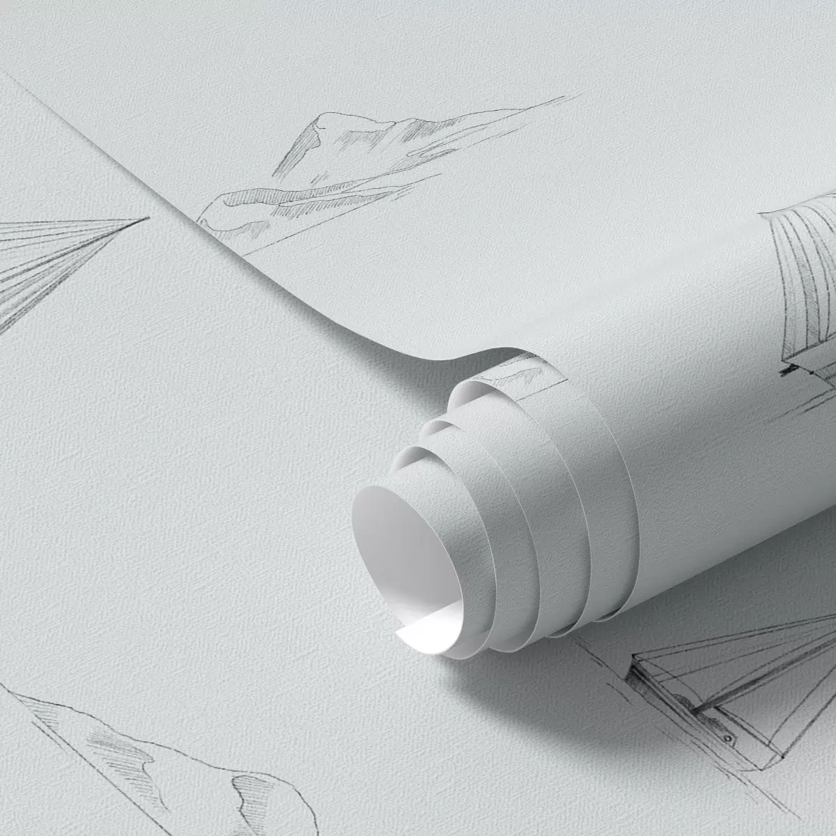 Tapete Skizzen von Yachten und Inseln, kühler blaugrauer Hintergrund Nr. a00654