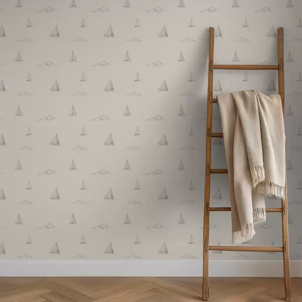 Tapete Skizzen von Yachten und Inseln, warmer cremefarbener Hintergrund Nr. a00654v1