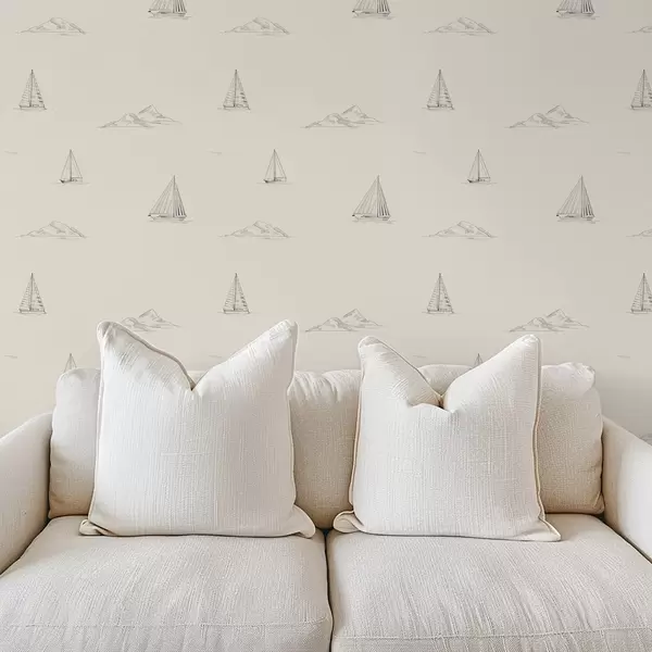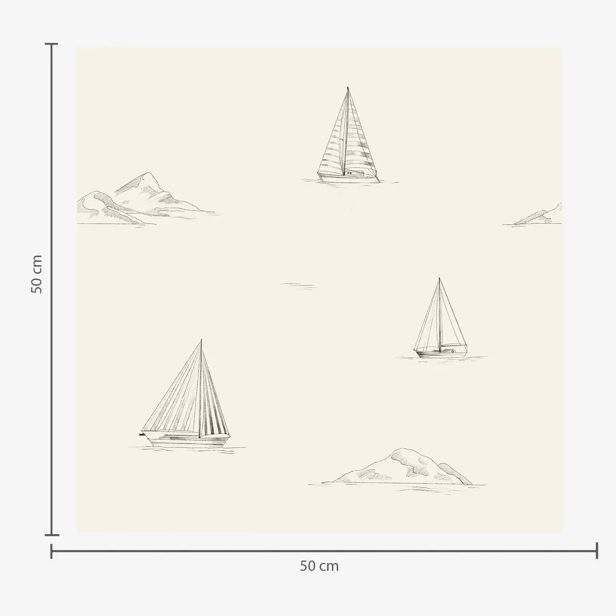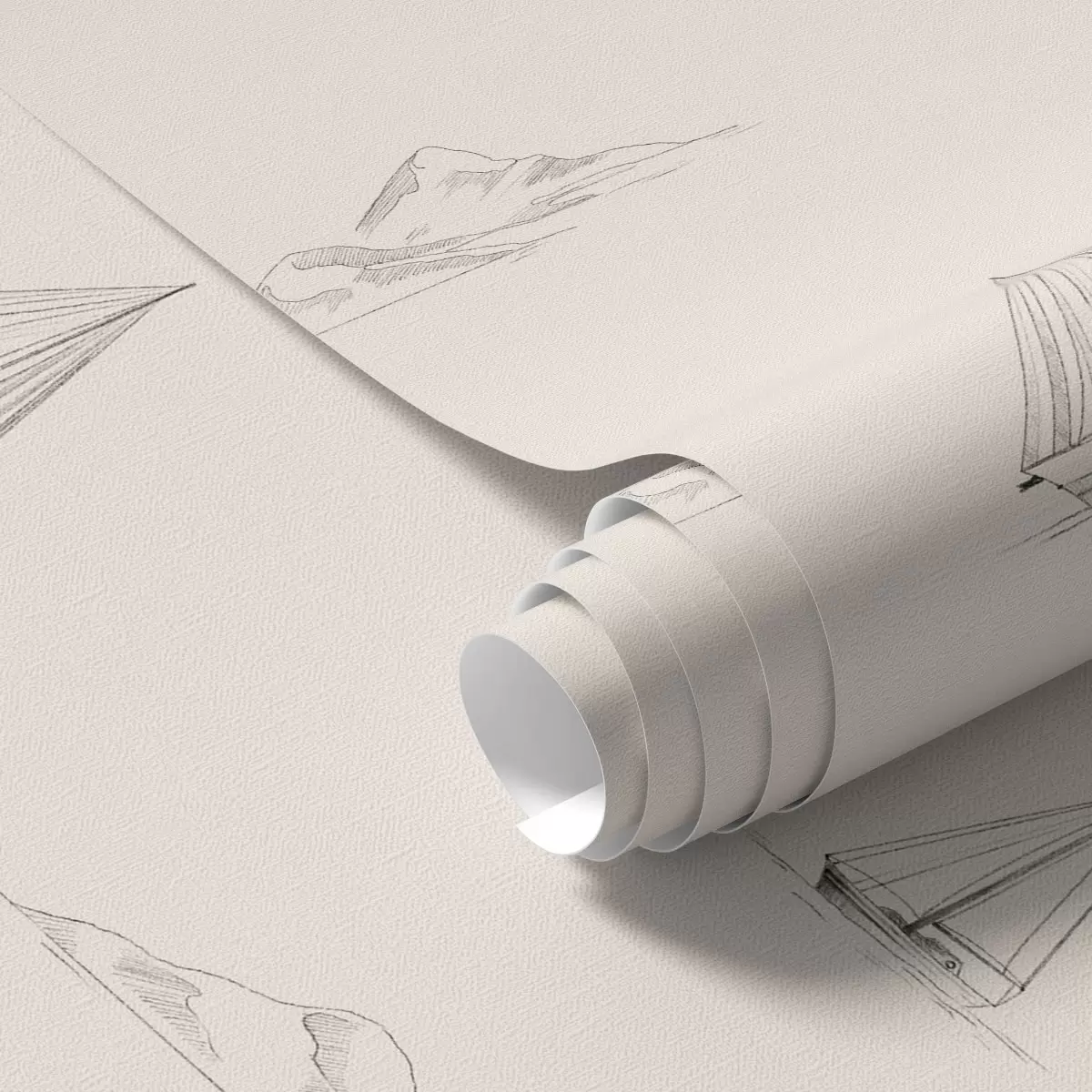 Tapete Skizzen von Yachten und Inseln, warmer cremefarbener Hintergrund Nr. a00654v1