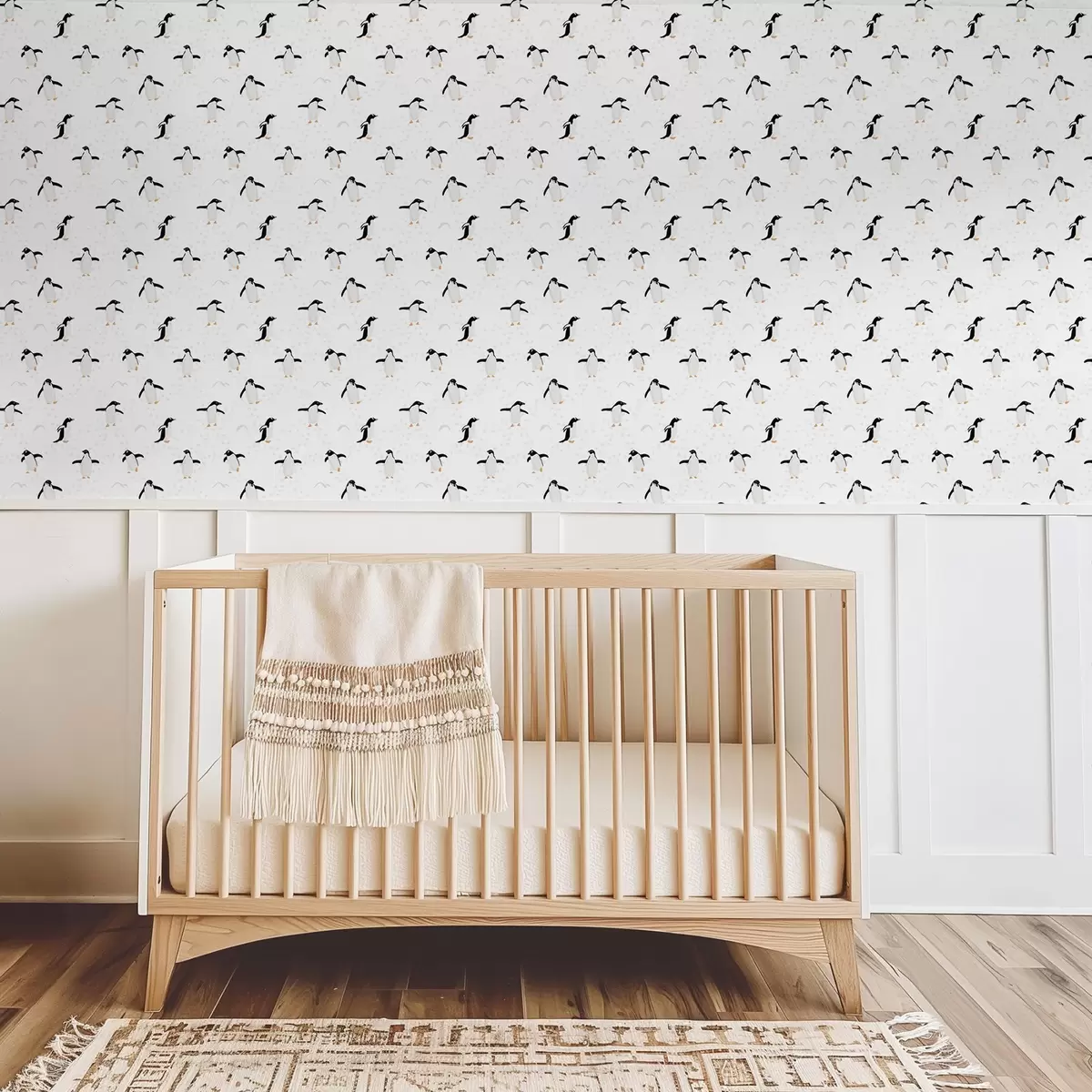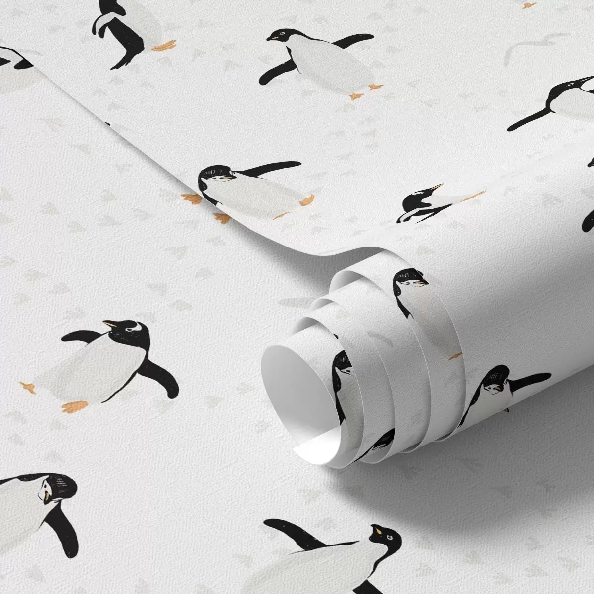 Tapete Pinguine auf weißem Hintergrund mit Fußabdrücken Nr. a00655v1