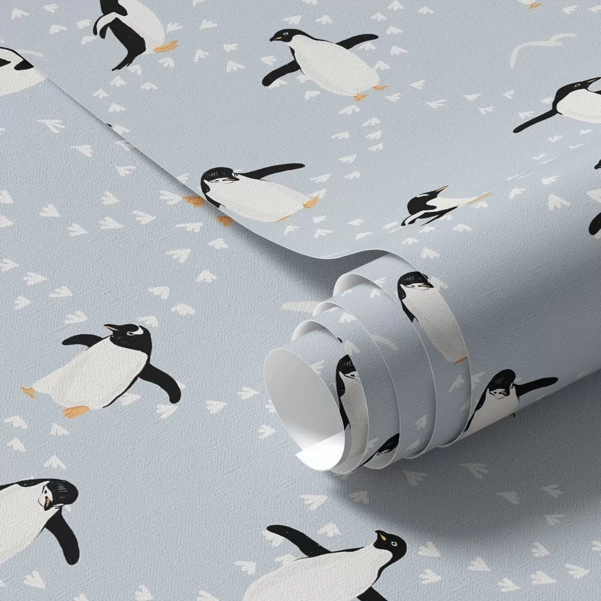 Tapete Pinguine auf hellblauem Hintergrund, Rhythmus der Fußspuren Nr. a00655v2