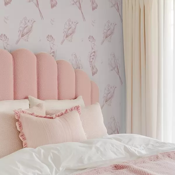 Tapete Vogel-Toile: Skizzen von Vögeln, zartrosa Hintergrund a00656