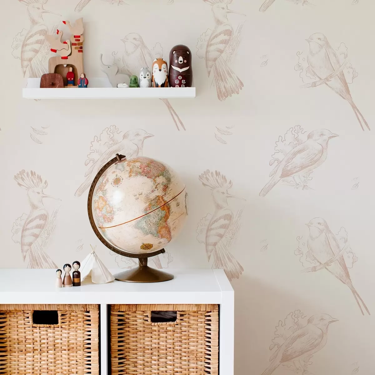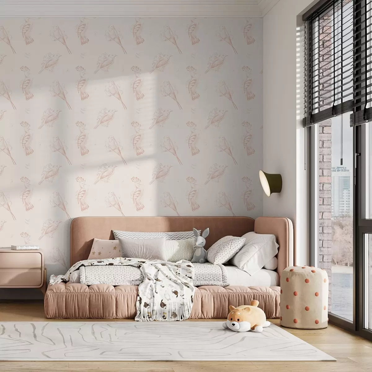 Tapete Vogel-Toile: Skizzen von Vögeln auf pfirsichfarbenem Hintergrund Nr. a00656v2